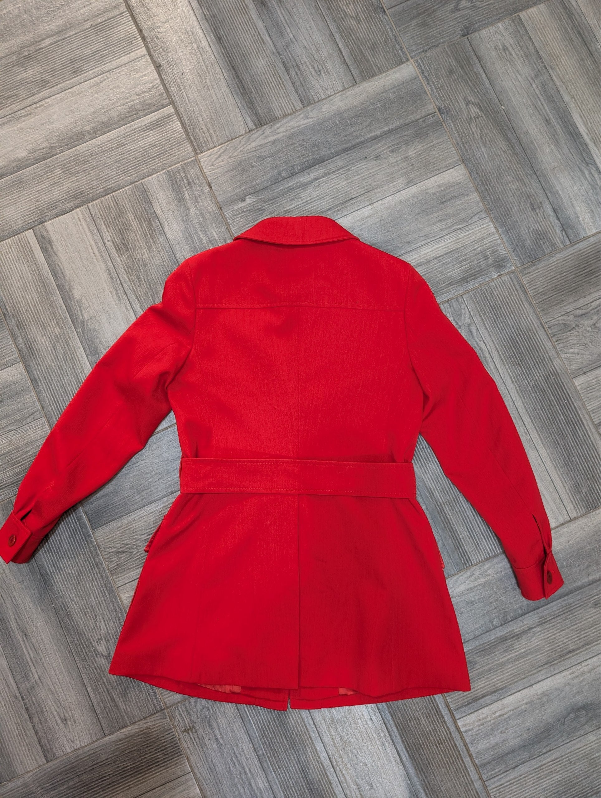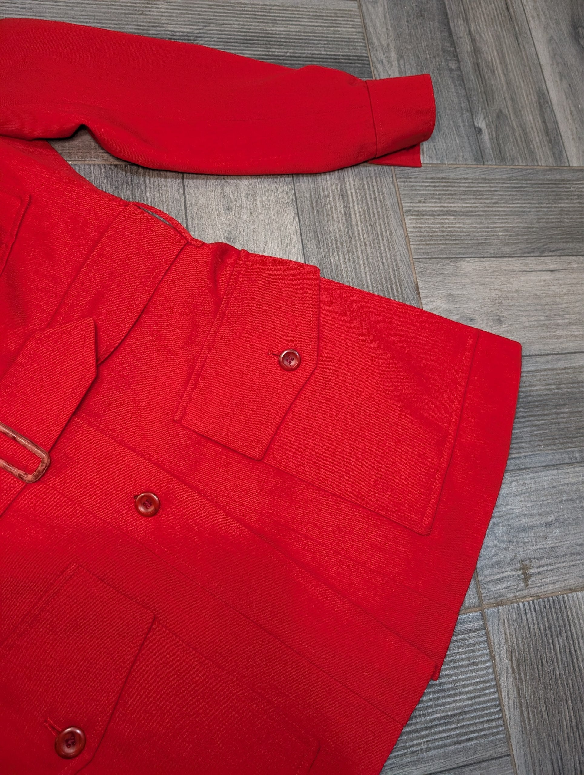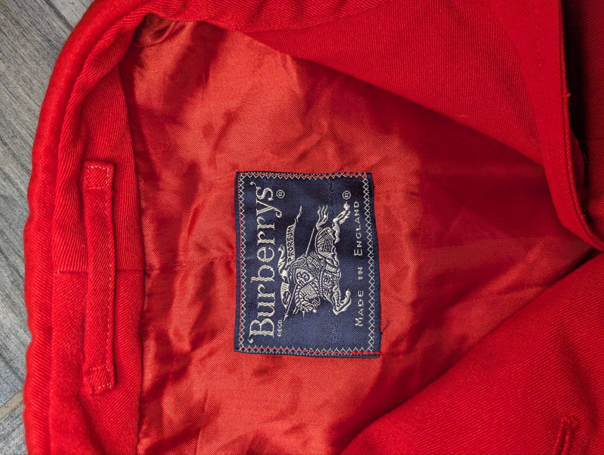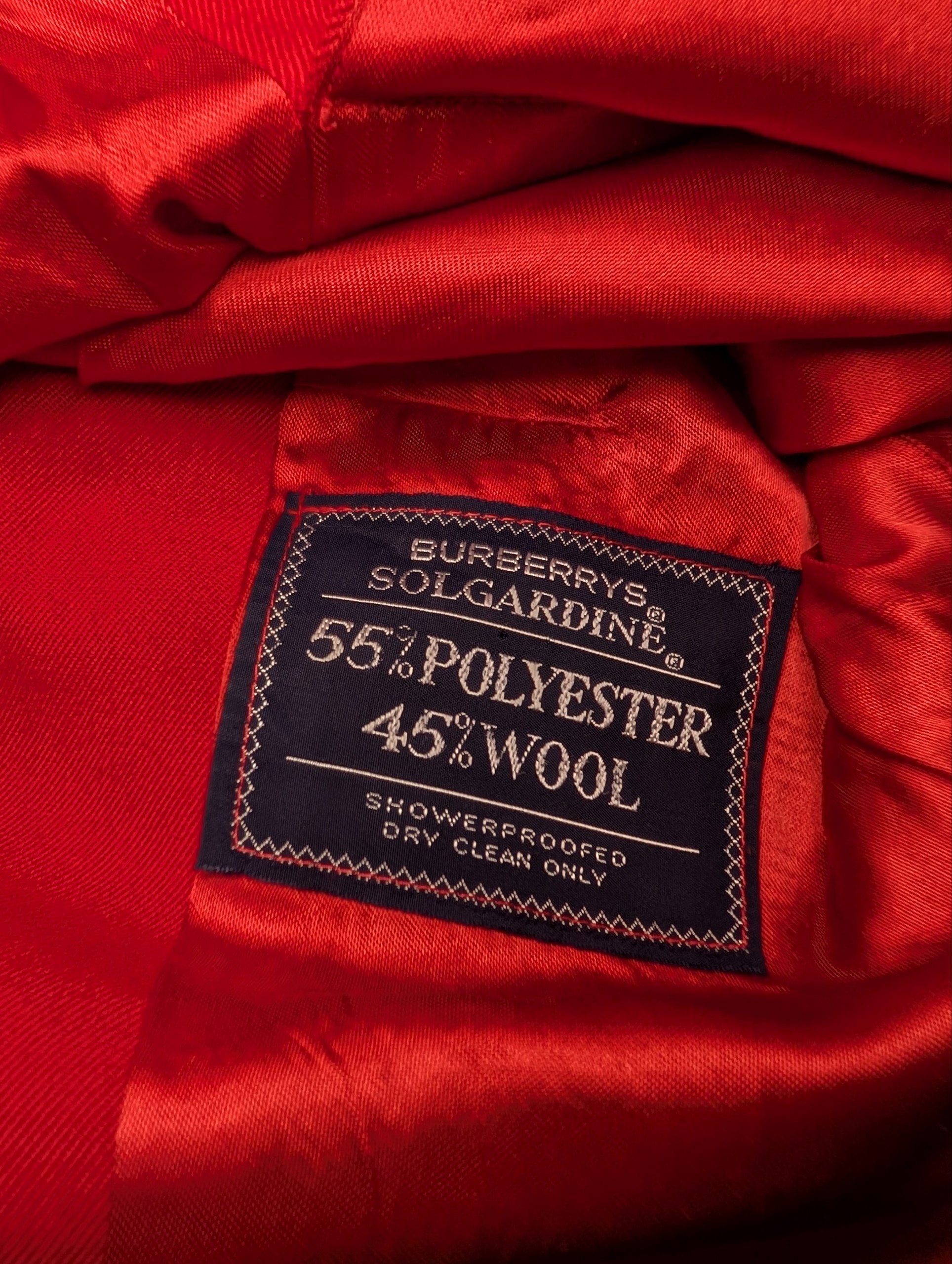 Trench vintage di Burberry, colore rosso, modello Solgardine, in lana e poliestere.