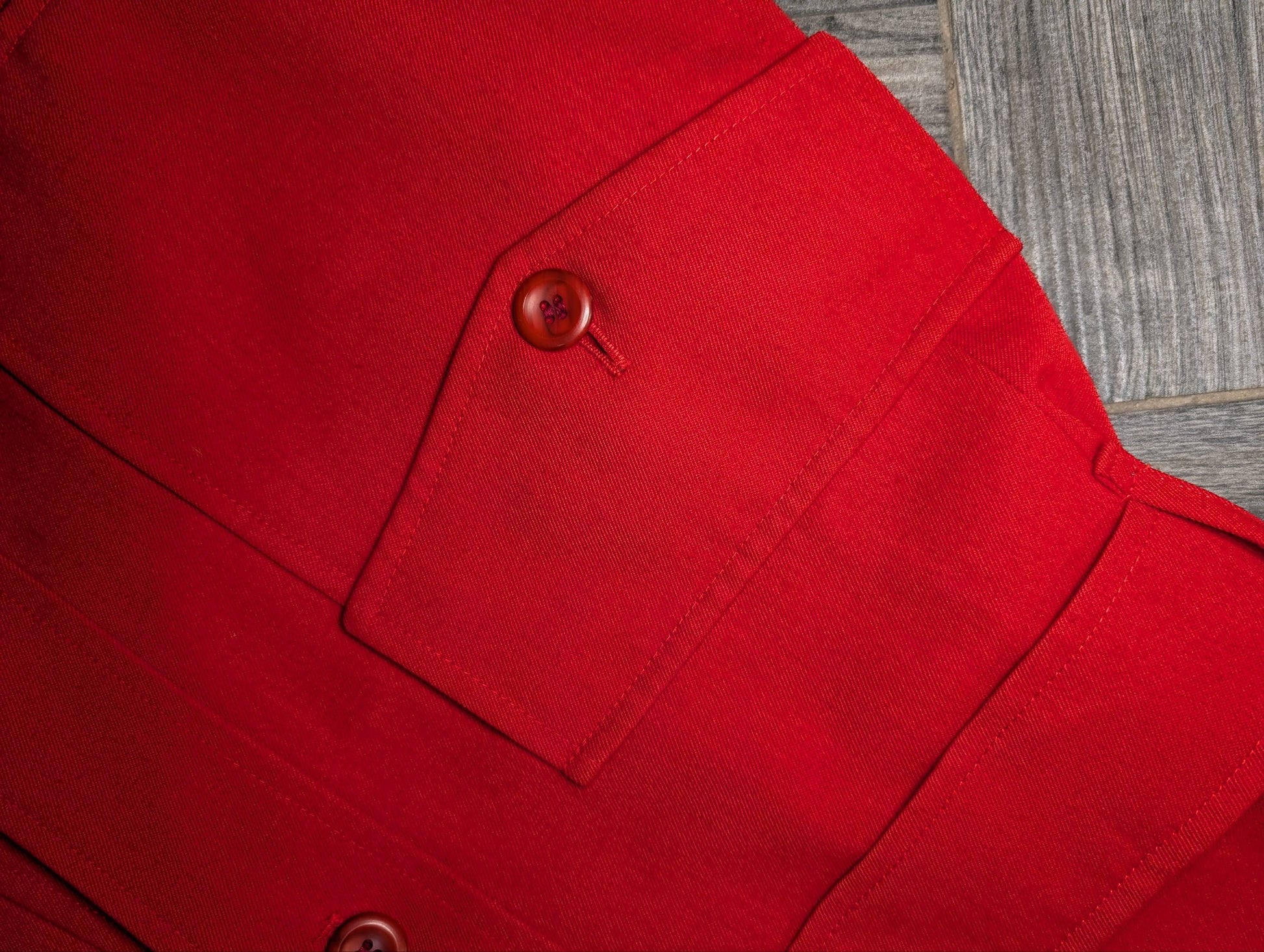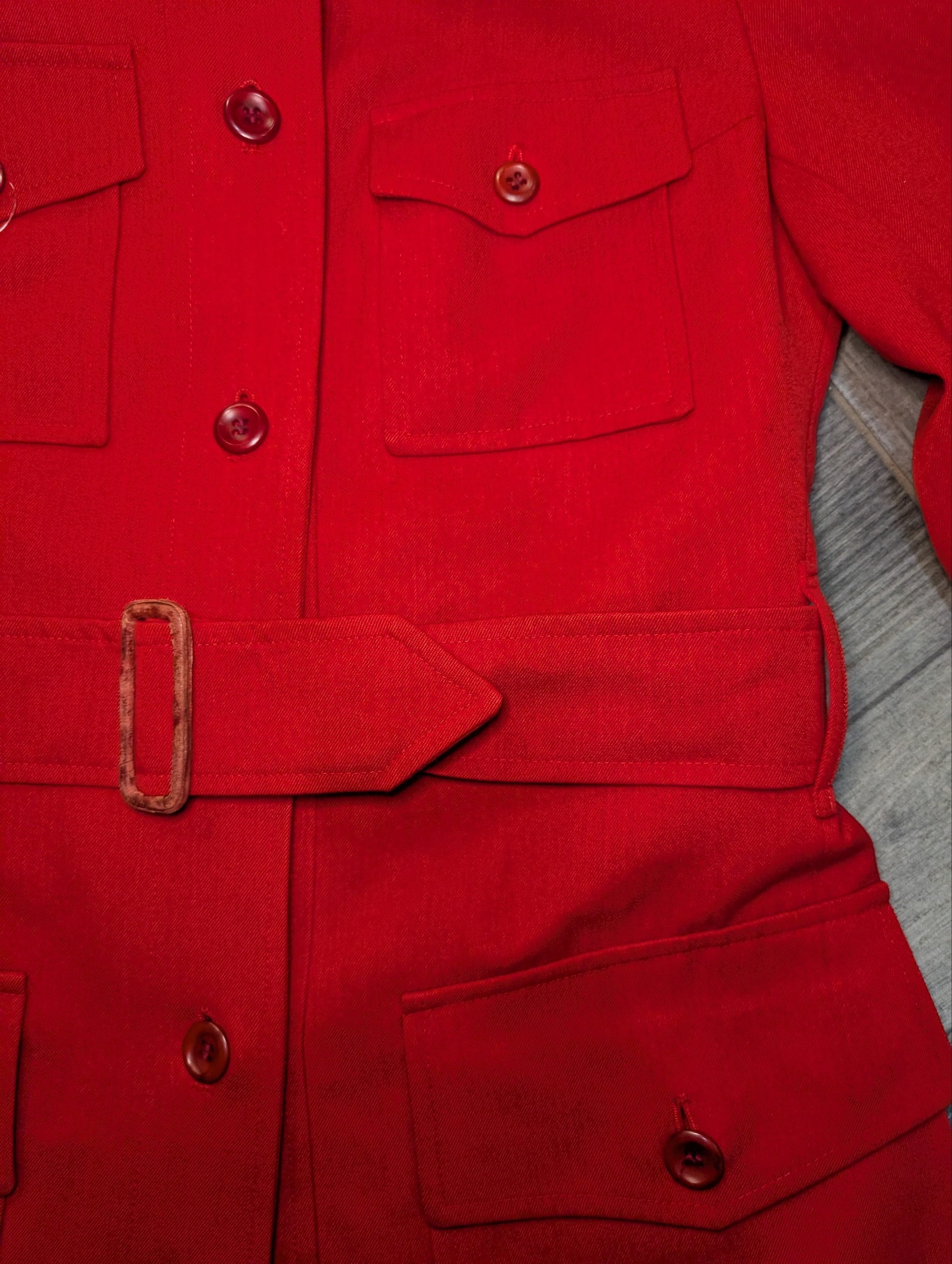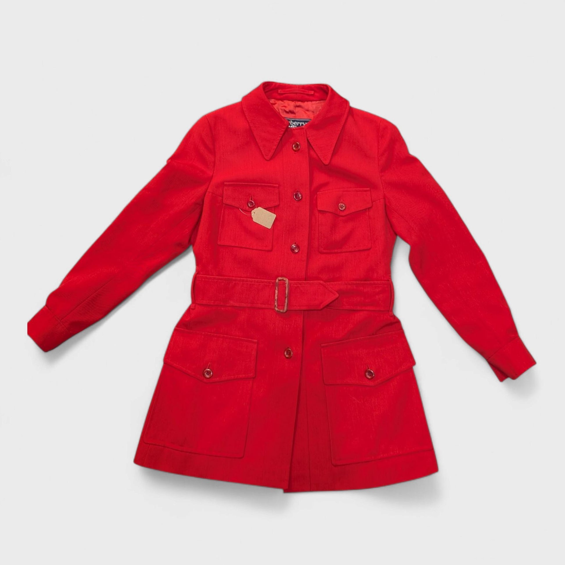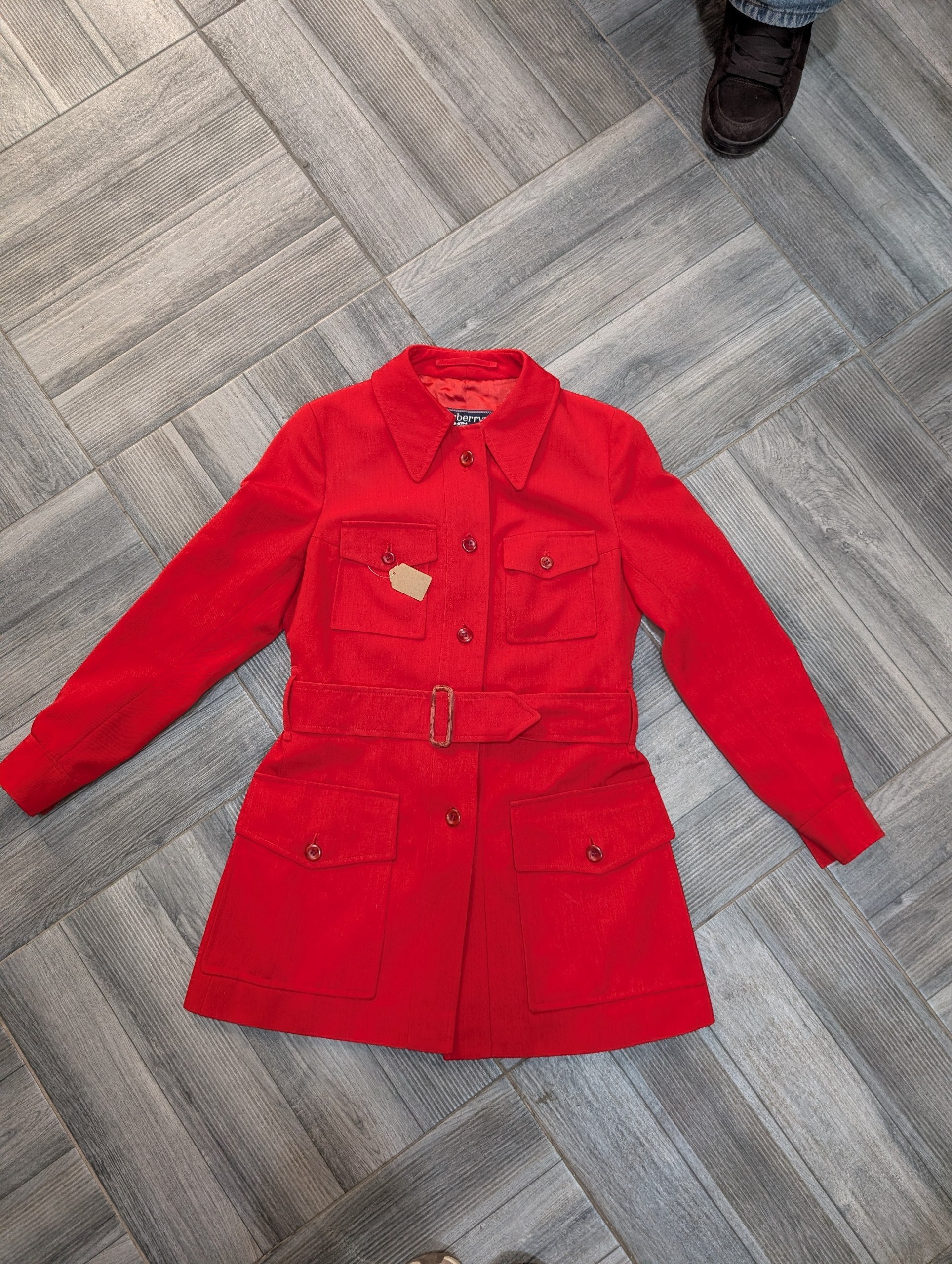 Trench vintage di Burberry, colore rosso, modello Solgardine, in lana e poliestere.