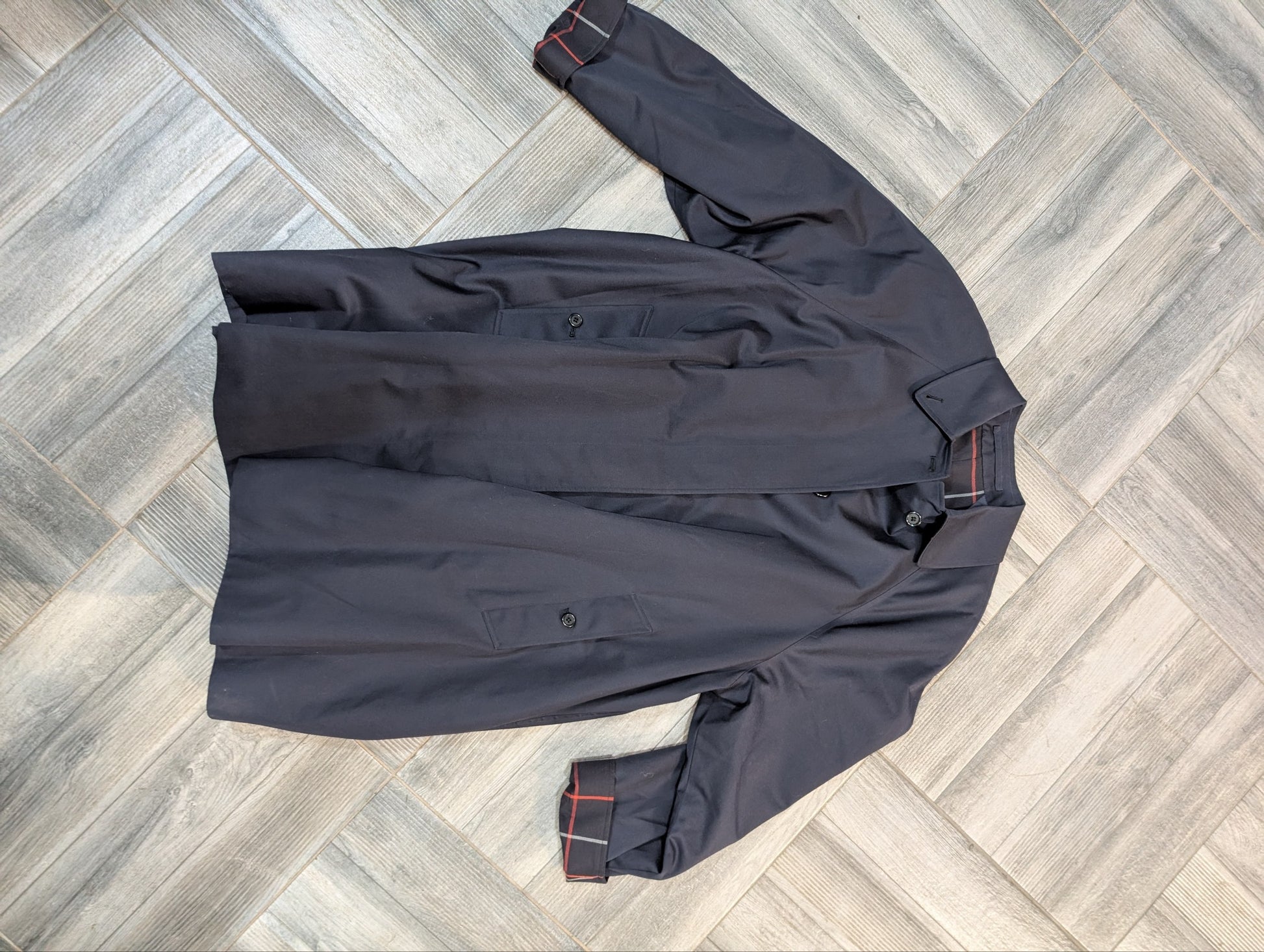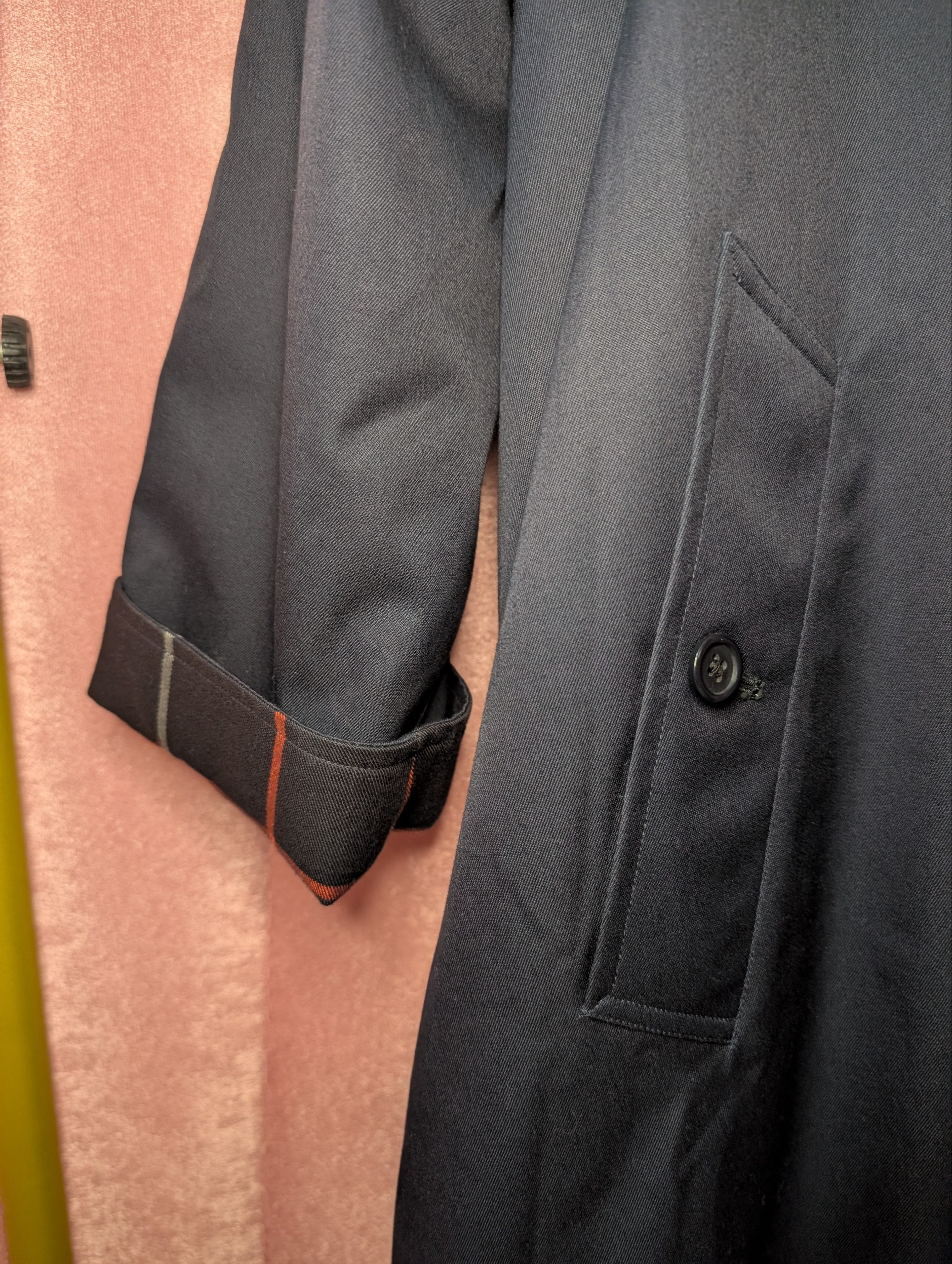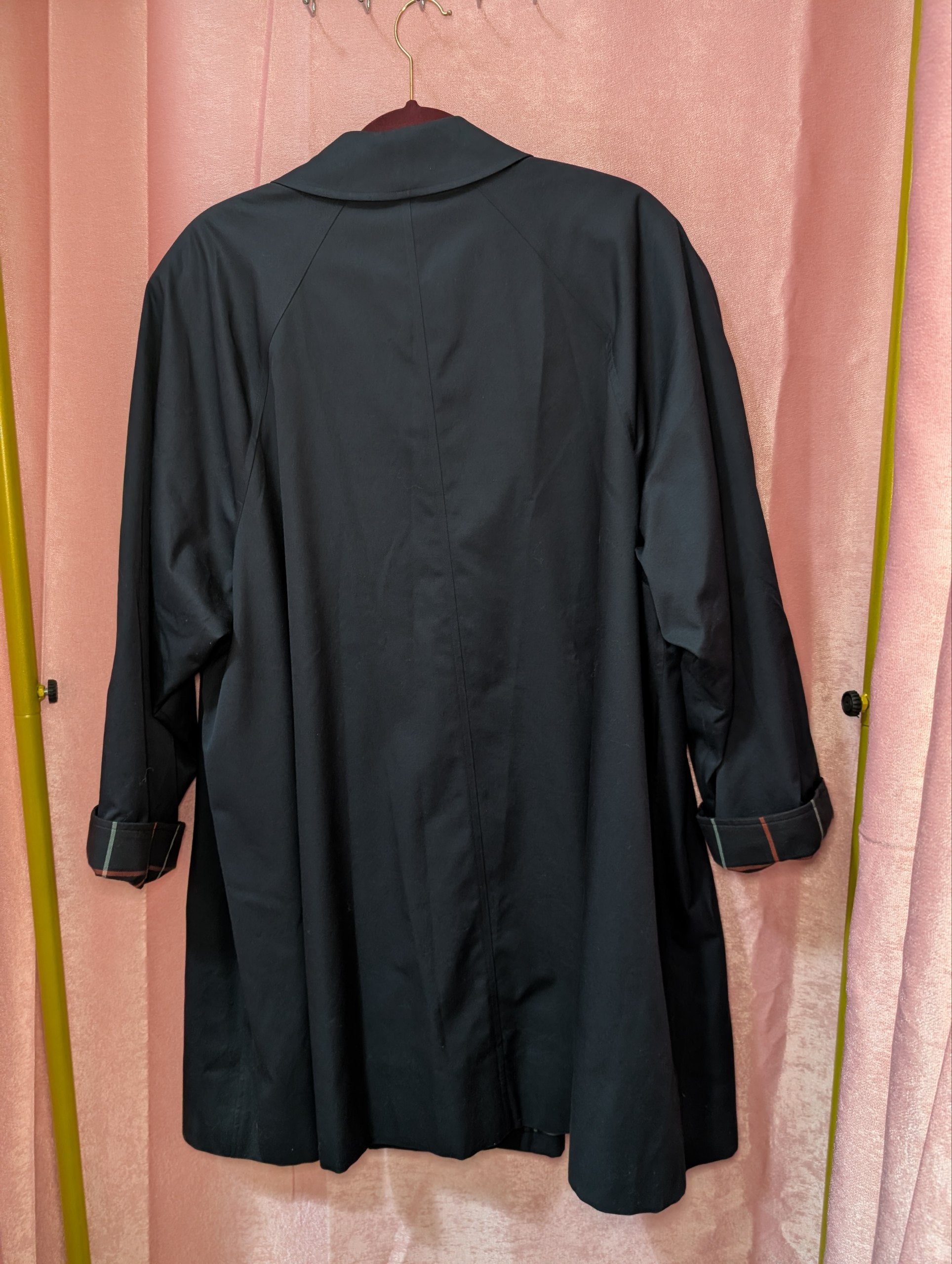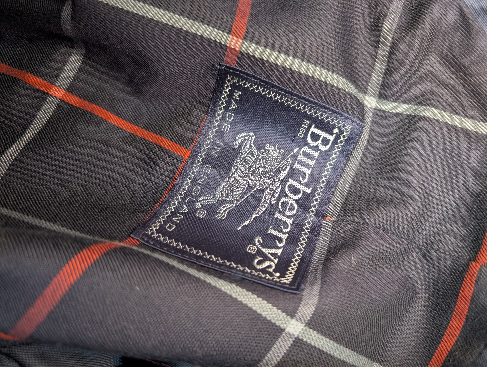Cappotto vintage anni 80 di Burberry's, modello Camden, in cotone e poliestere blu scuro e fodera interna in check. Ottime condizioni generali, vestibilità svasata proprio come prevede il modello.