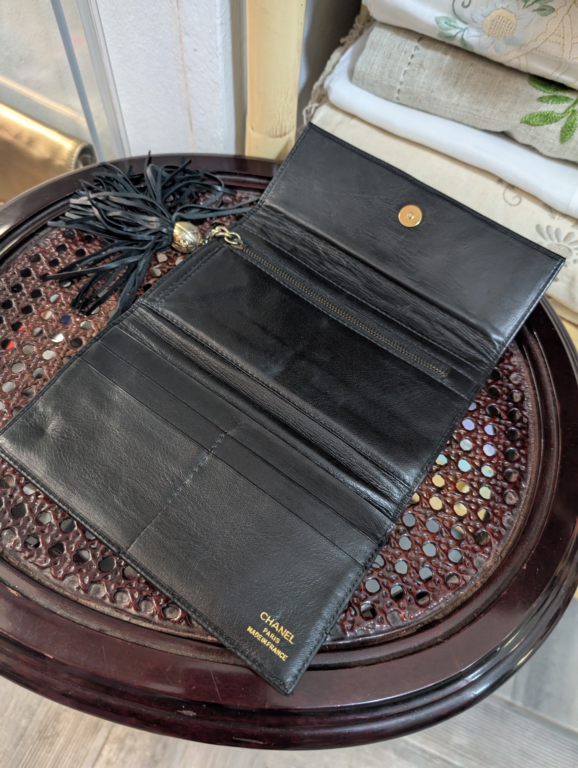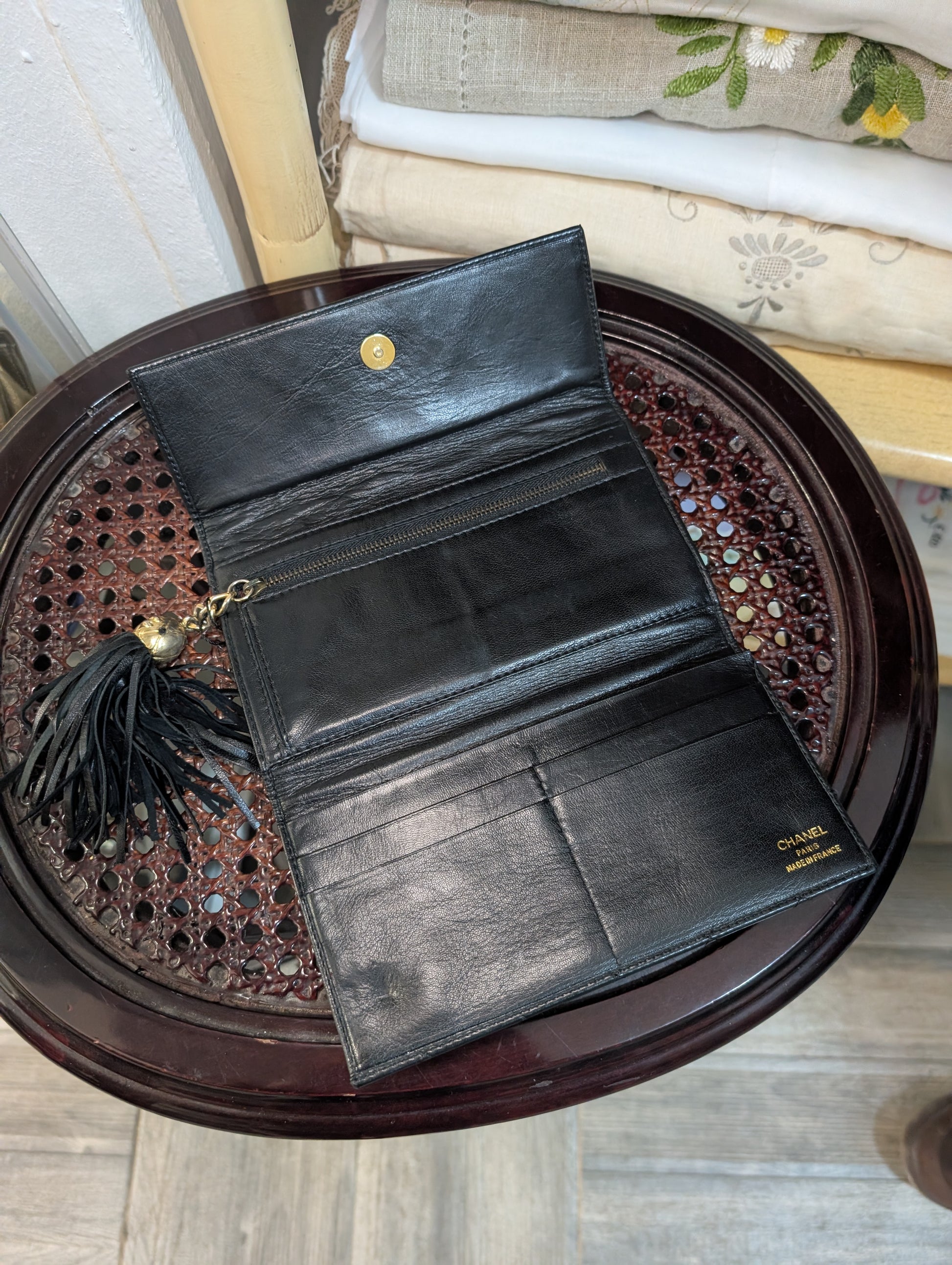 Portafoglio vintage risalente al 1970/1980 circa di Chanel, in morbidissima pelle di agnello, nappina e chiusura con calamita. Presenta vari scomparti interni, capiente e comodo. Il portafoglio si presenta, nonostante gli anni, in condizioni davvero molto buone.Β
