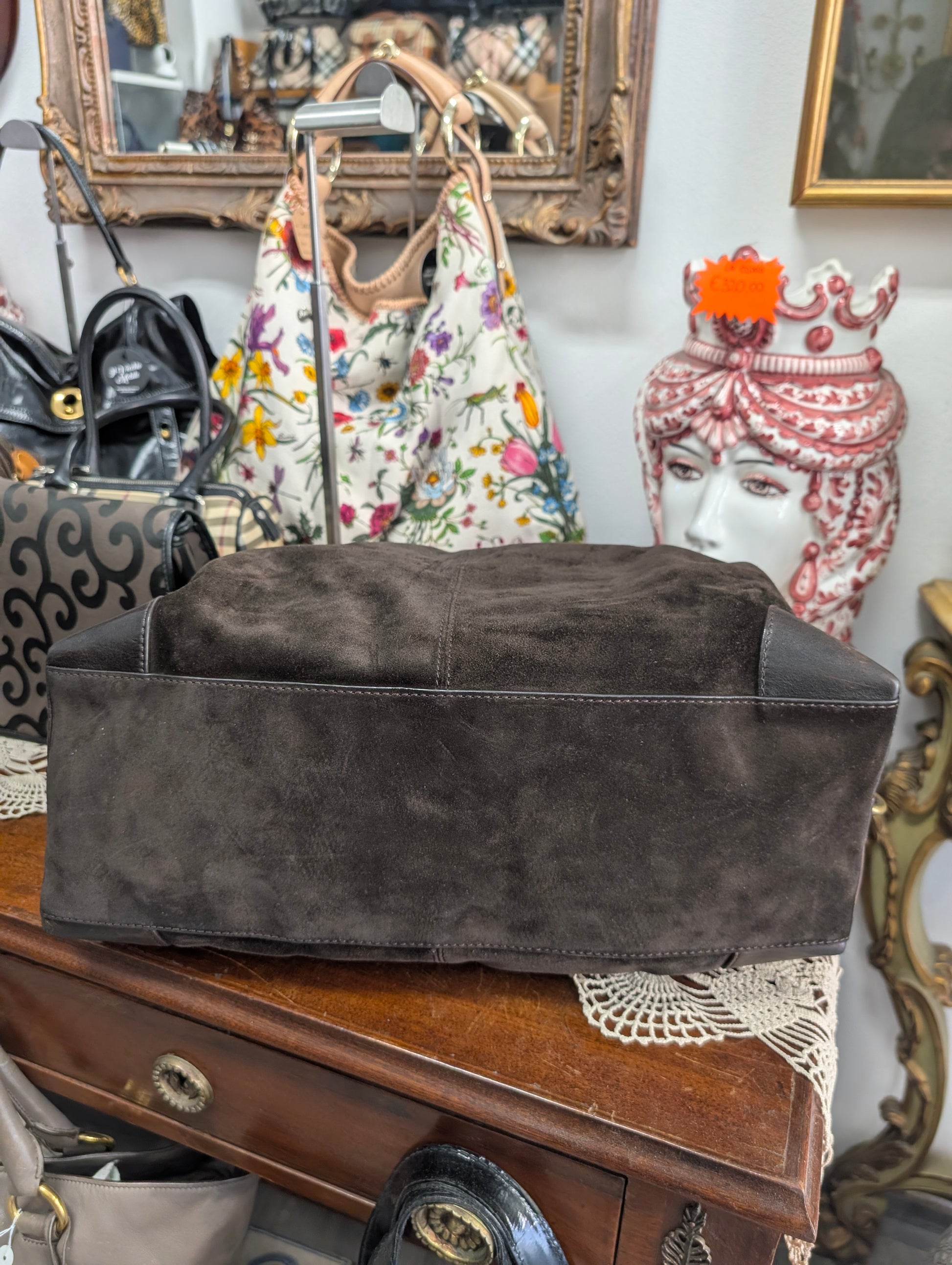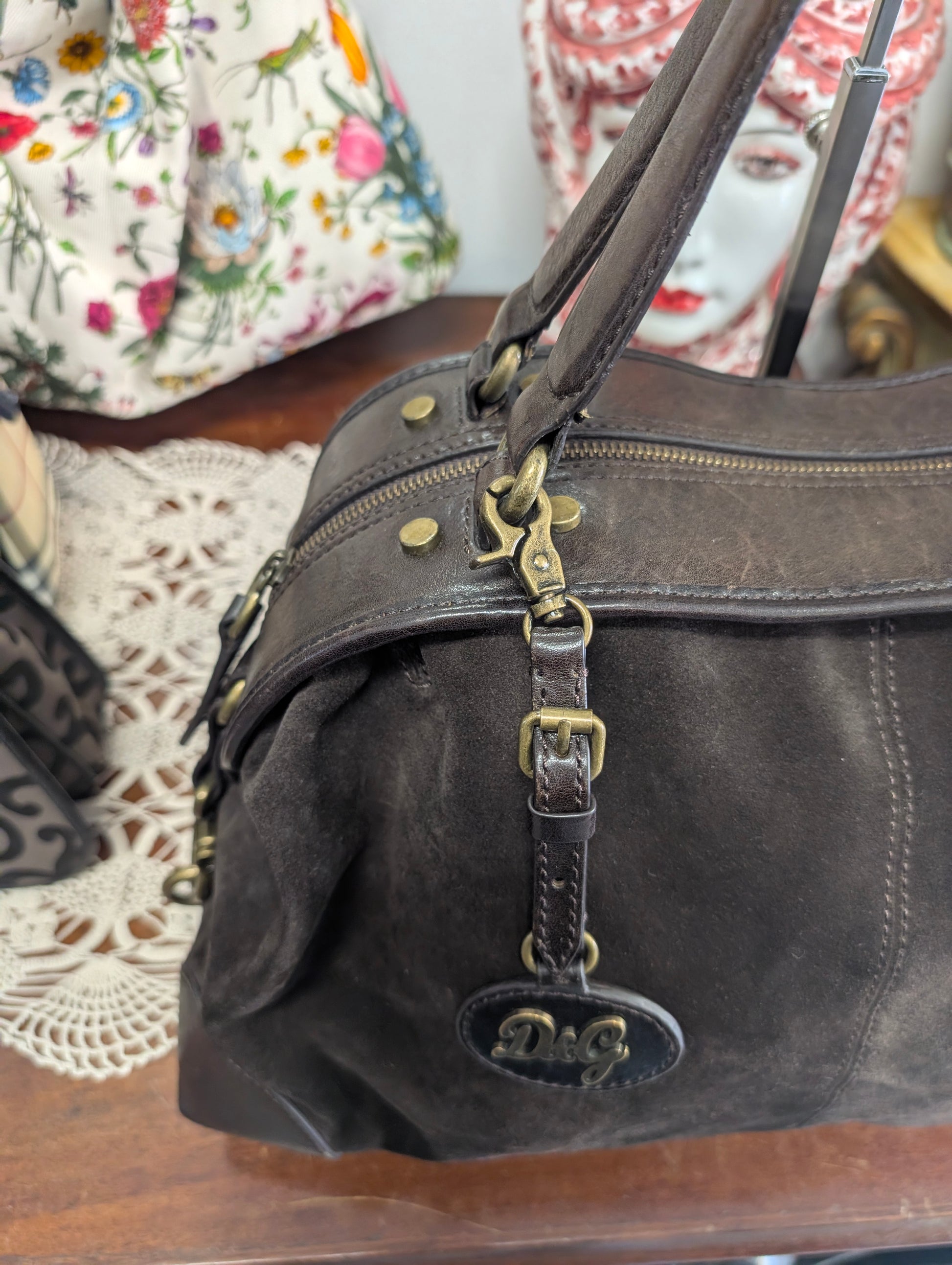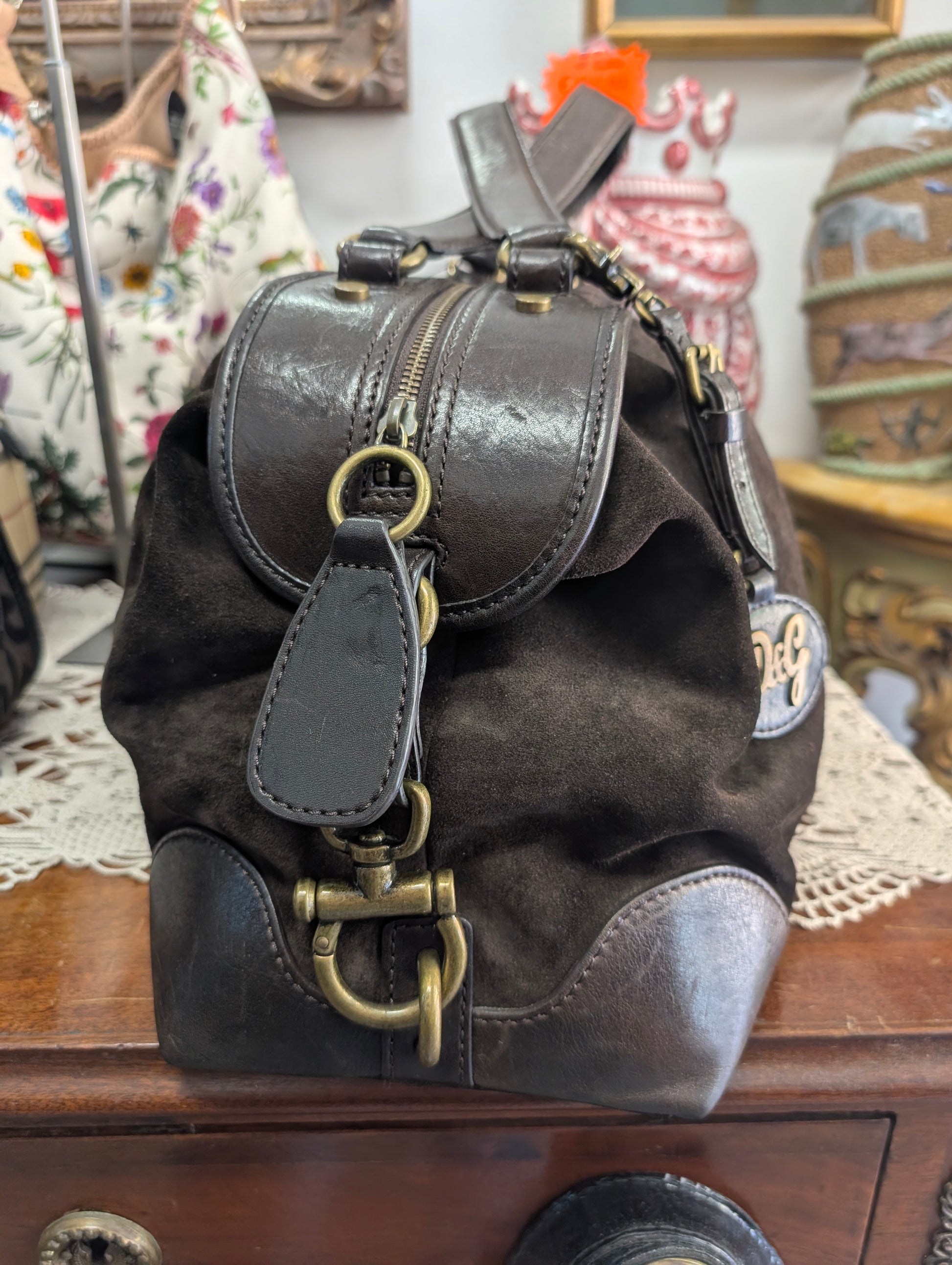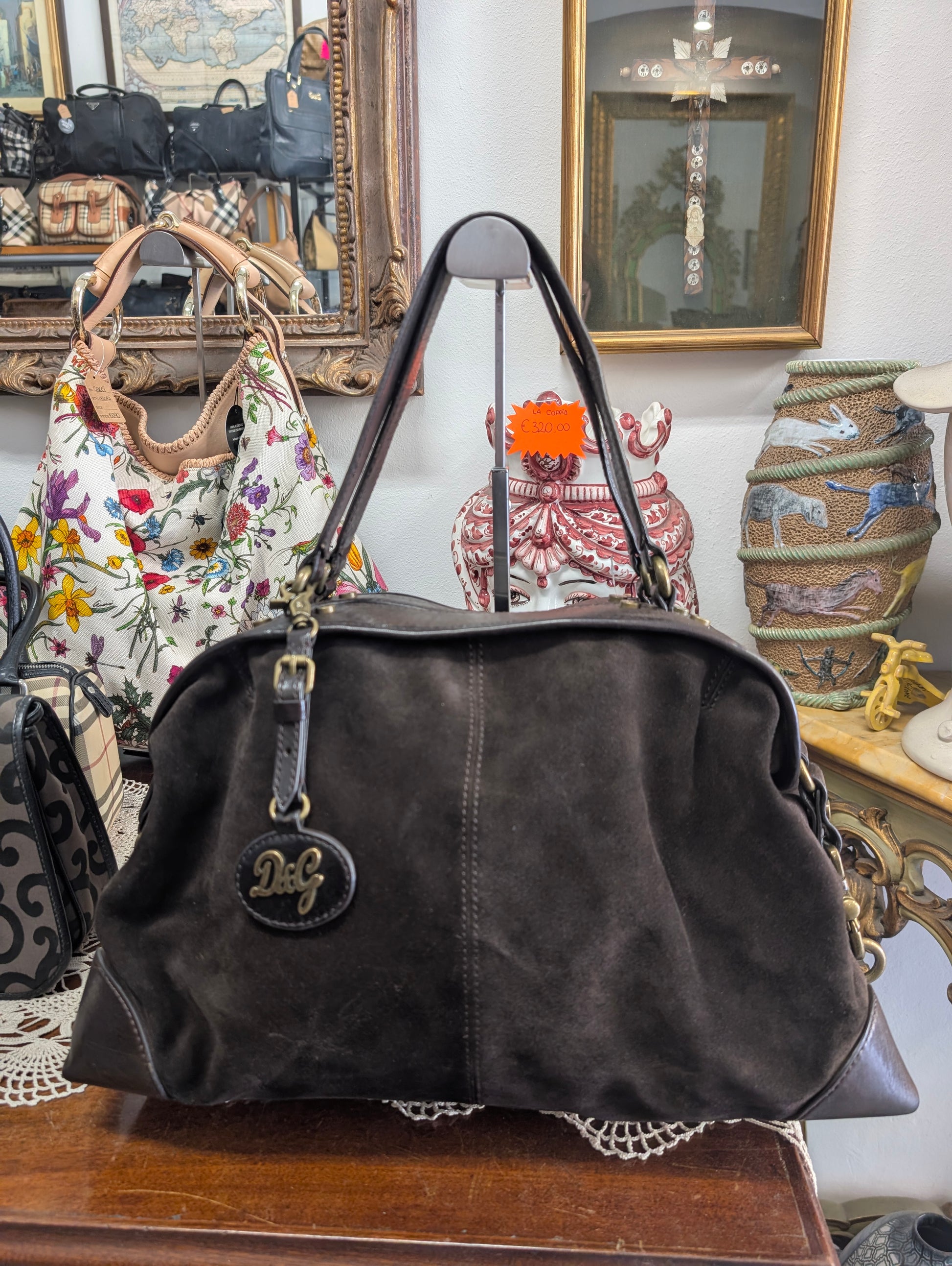Splendida borsa in velluto e pelle marrone di Dolce e Gabbana, vintage, modello Janet. Ottime condizioni generali, doppi manici, portabile a spalla con vestiti più leggeri o in alternativa a mano.