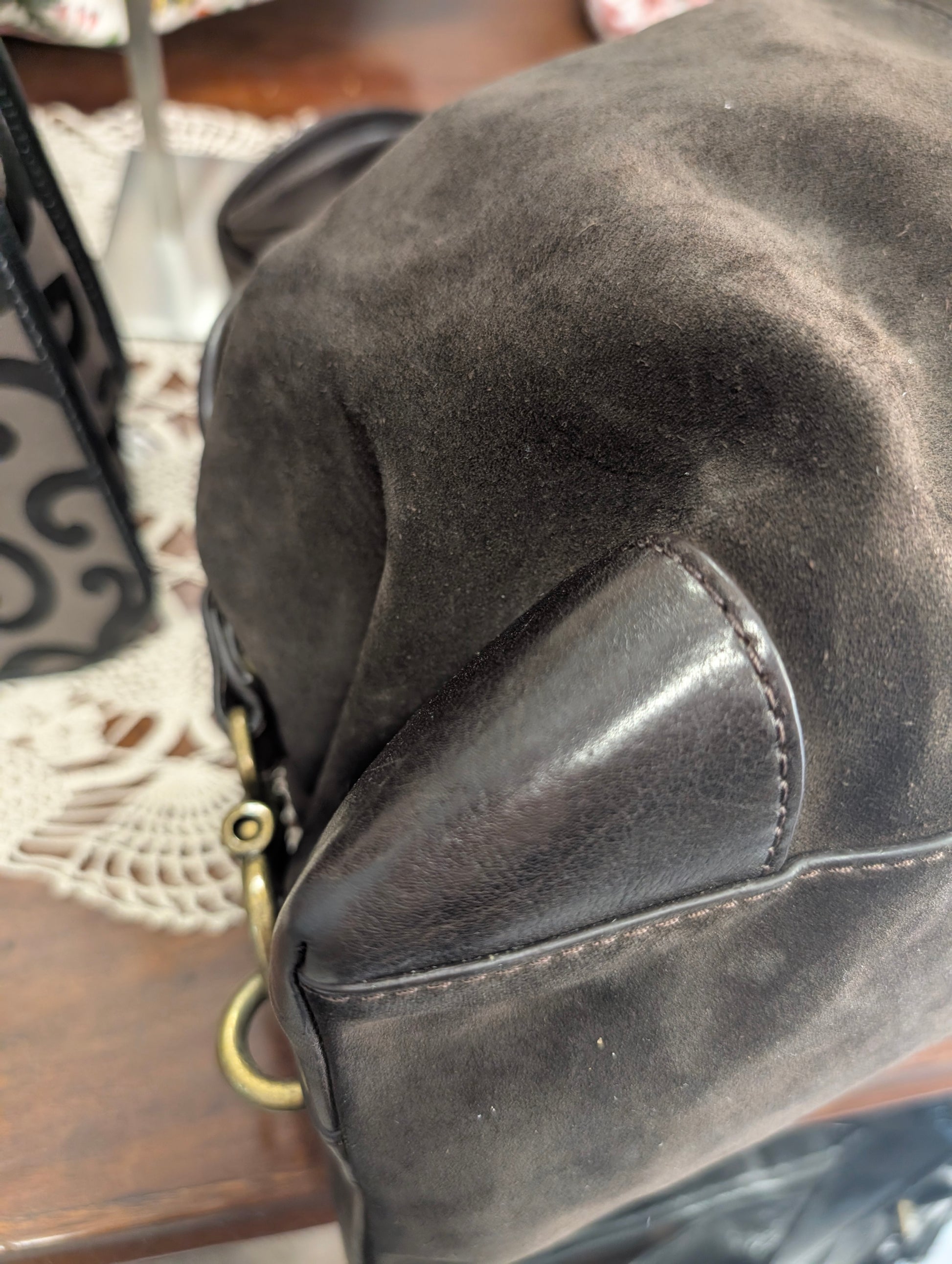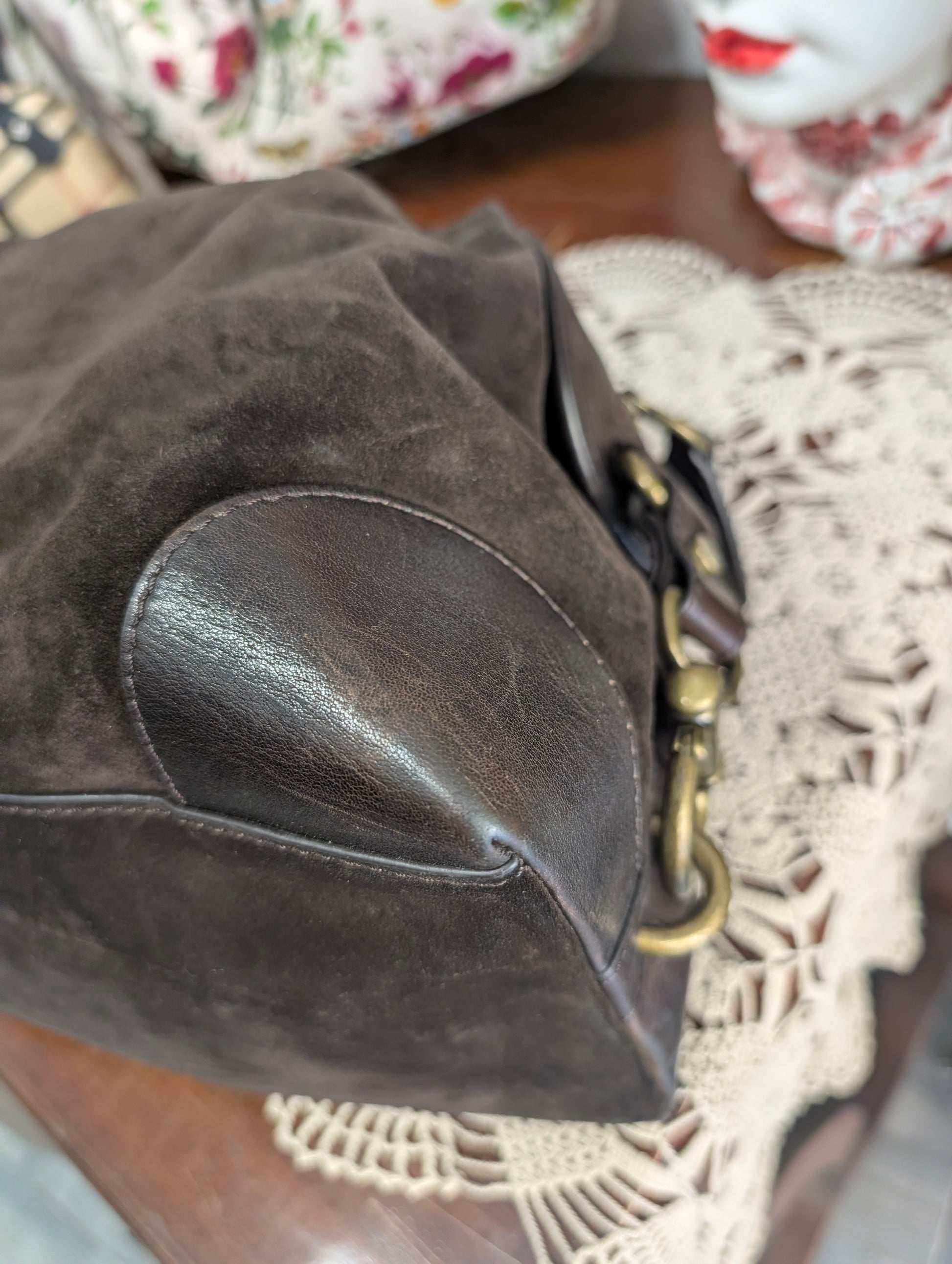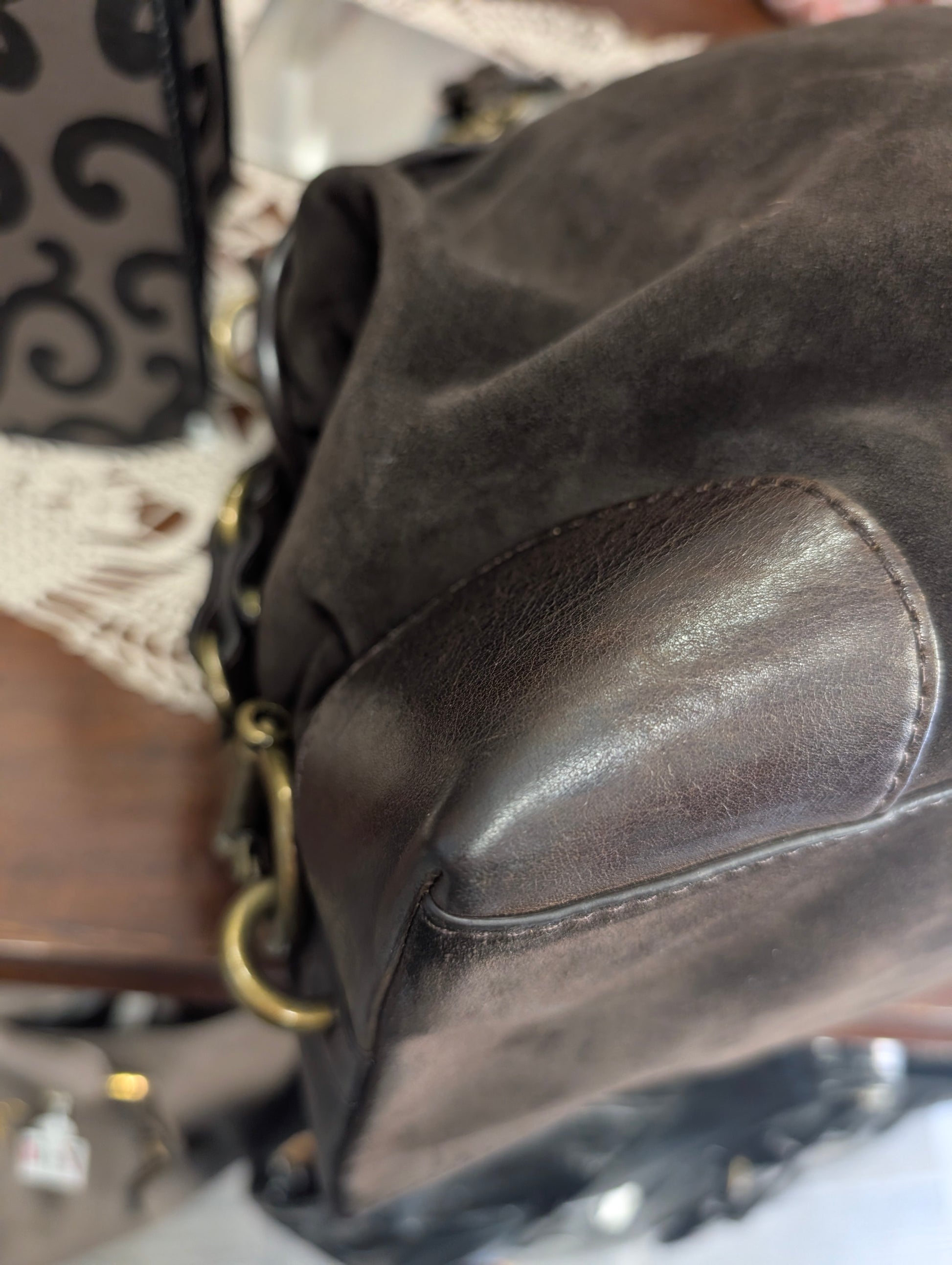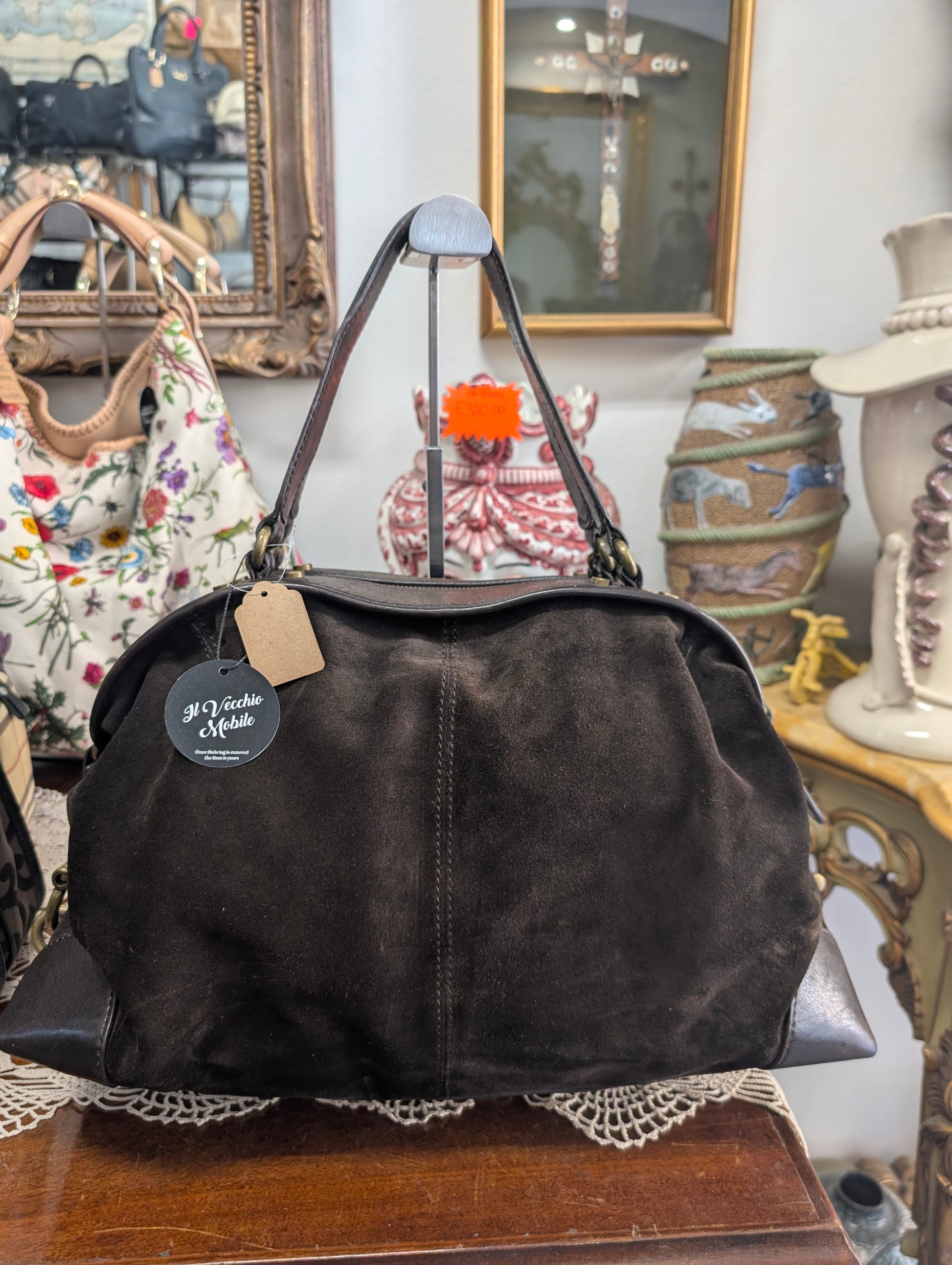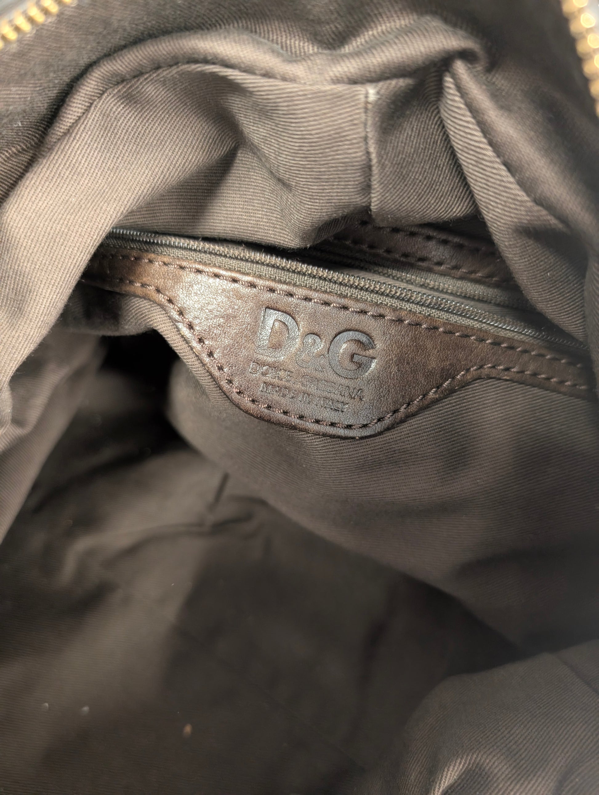 Splendida borsa in velluto e pelle marrone di Dolce e Gabbana, vintage, modello Janet. Ottime condizioni generali, doppi manici, portabile a spalla con vestiti più leggeri o in alternativa a mano.