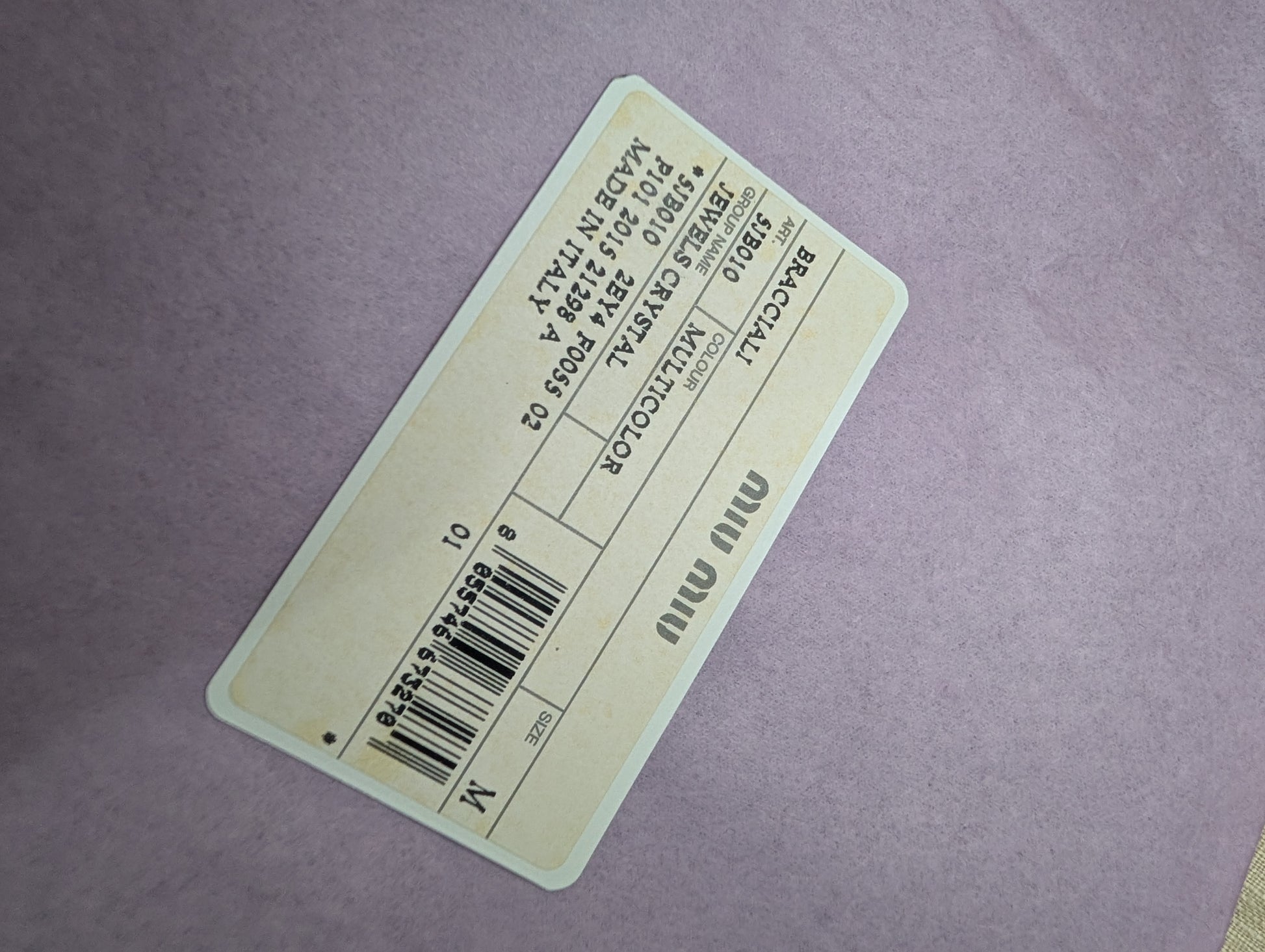 Bracciale di Miu Miu, nuovo e mai utilizzato, completo di scatola, dustbag e garanzia.