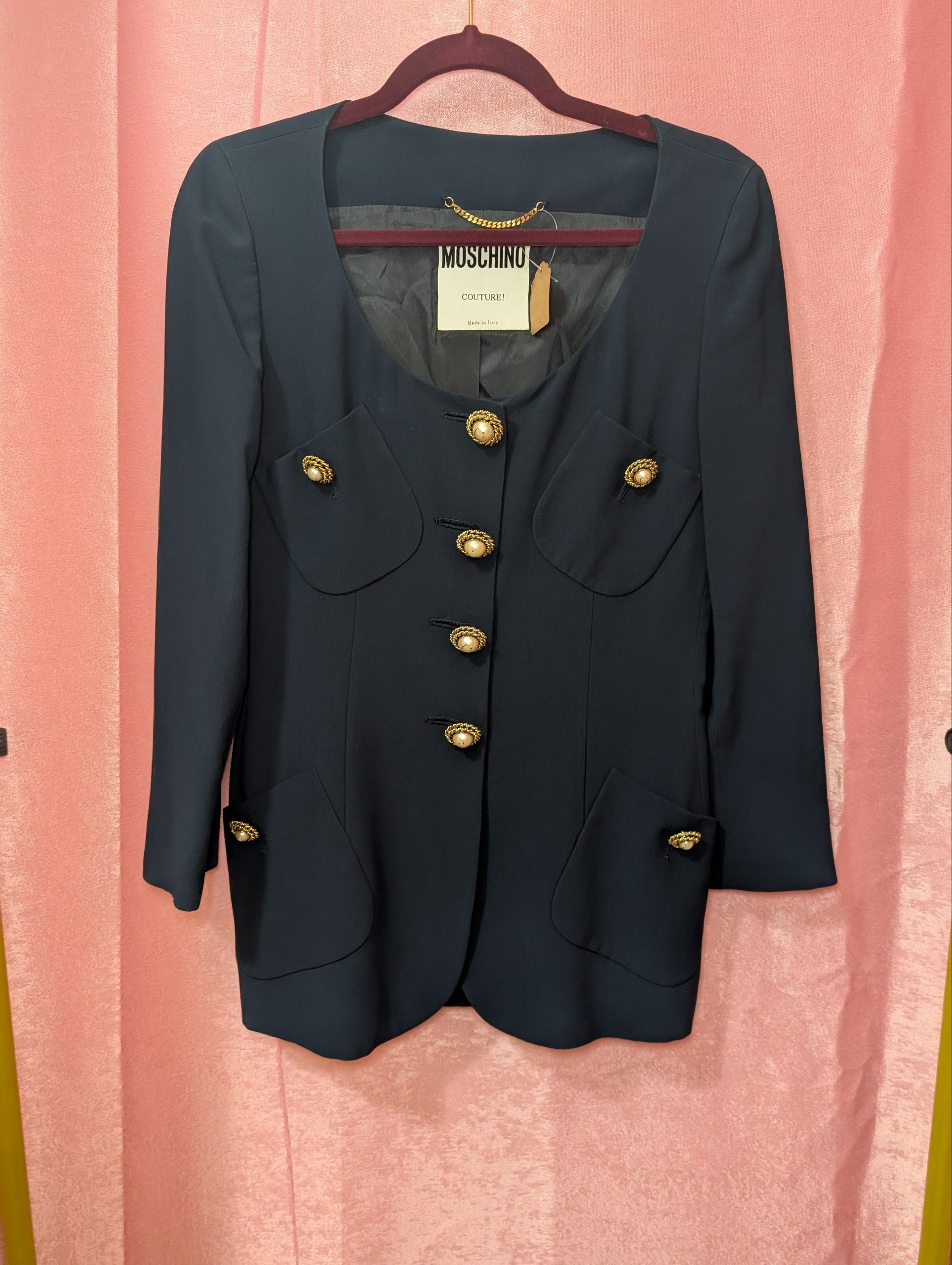 Iconica giacca di Moschino con bottoni Smile, ovviamente vintage fine anni 80 inizi 90.