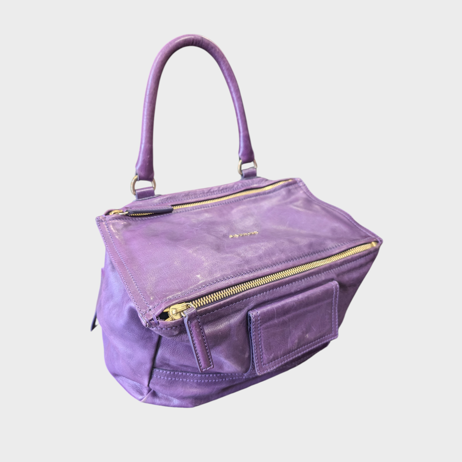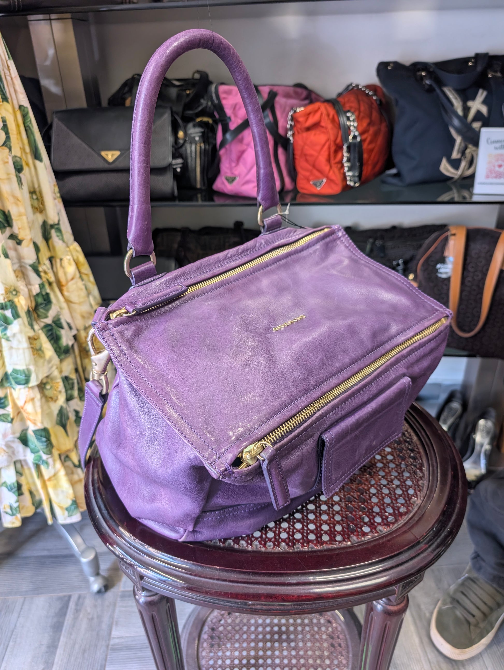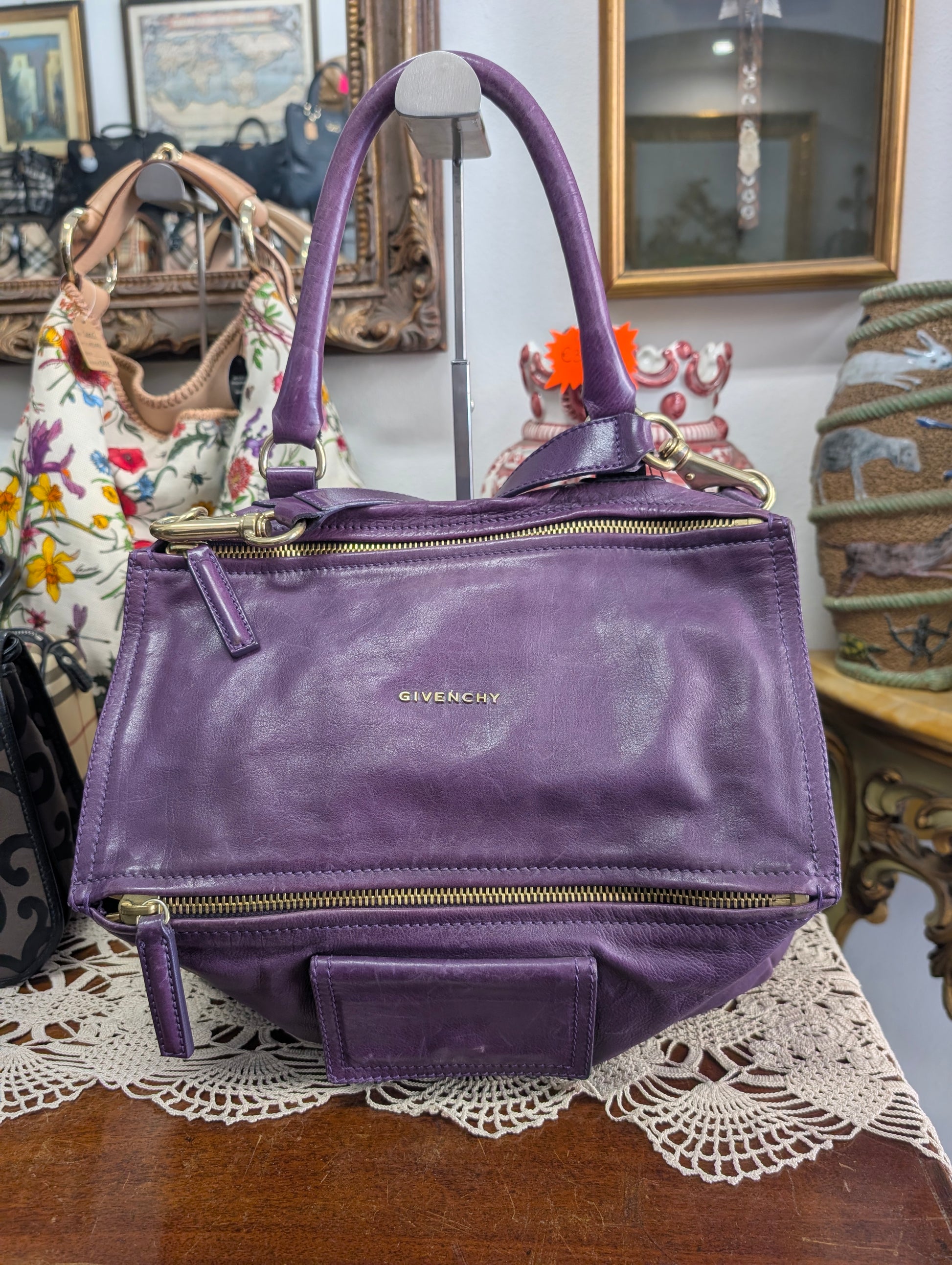 Iconica borsa di Givenchy, modello Pandora, in pelle viola. Buone condizioni generali, portabile sia a spalla che a tracolla.