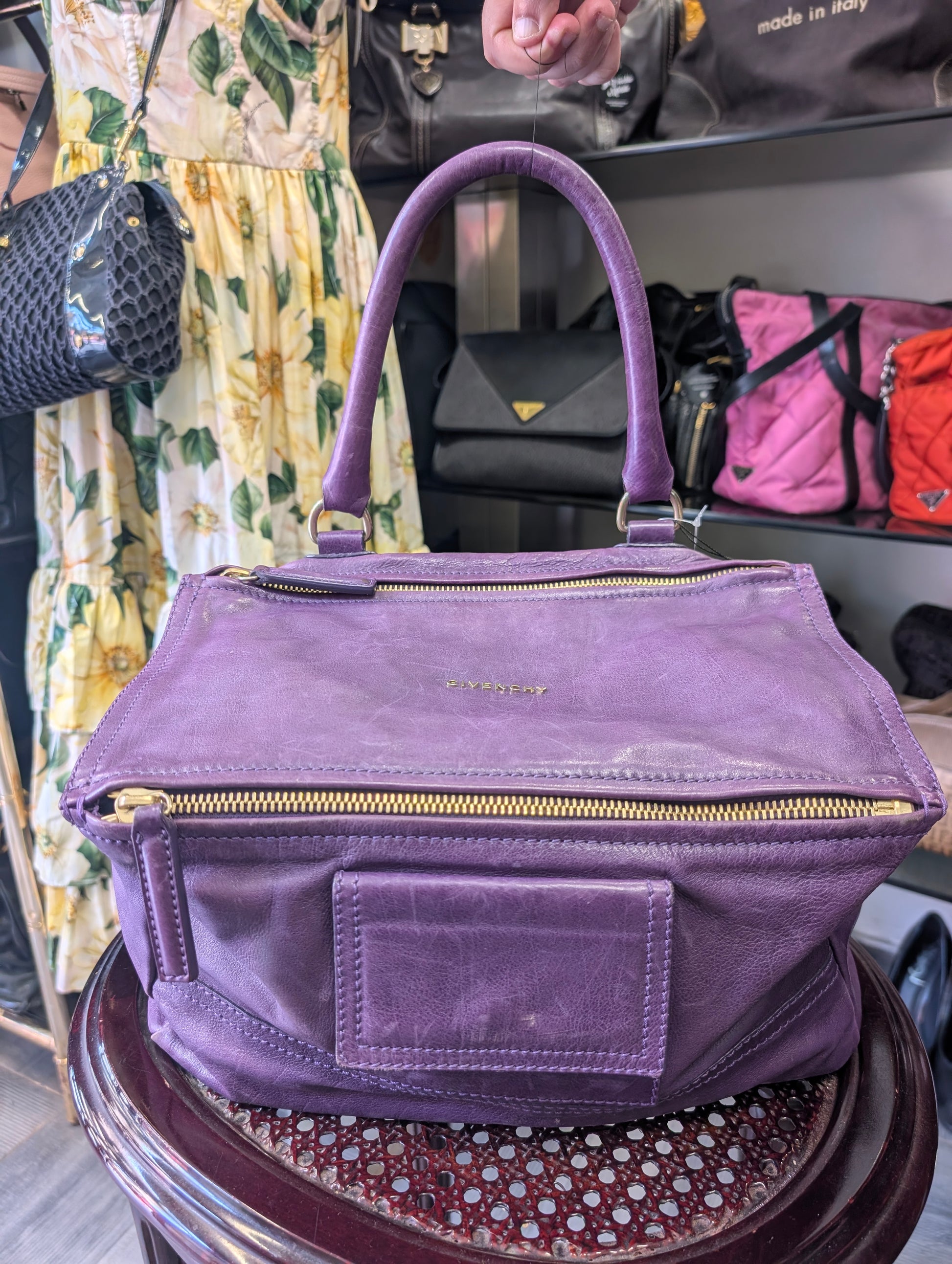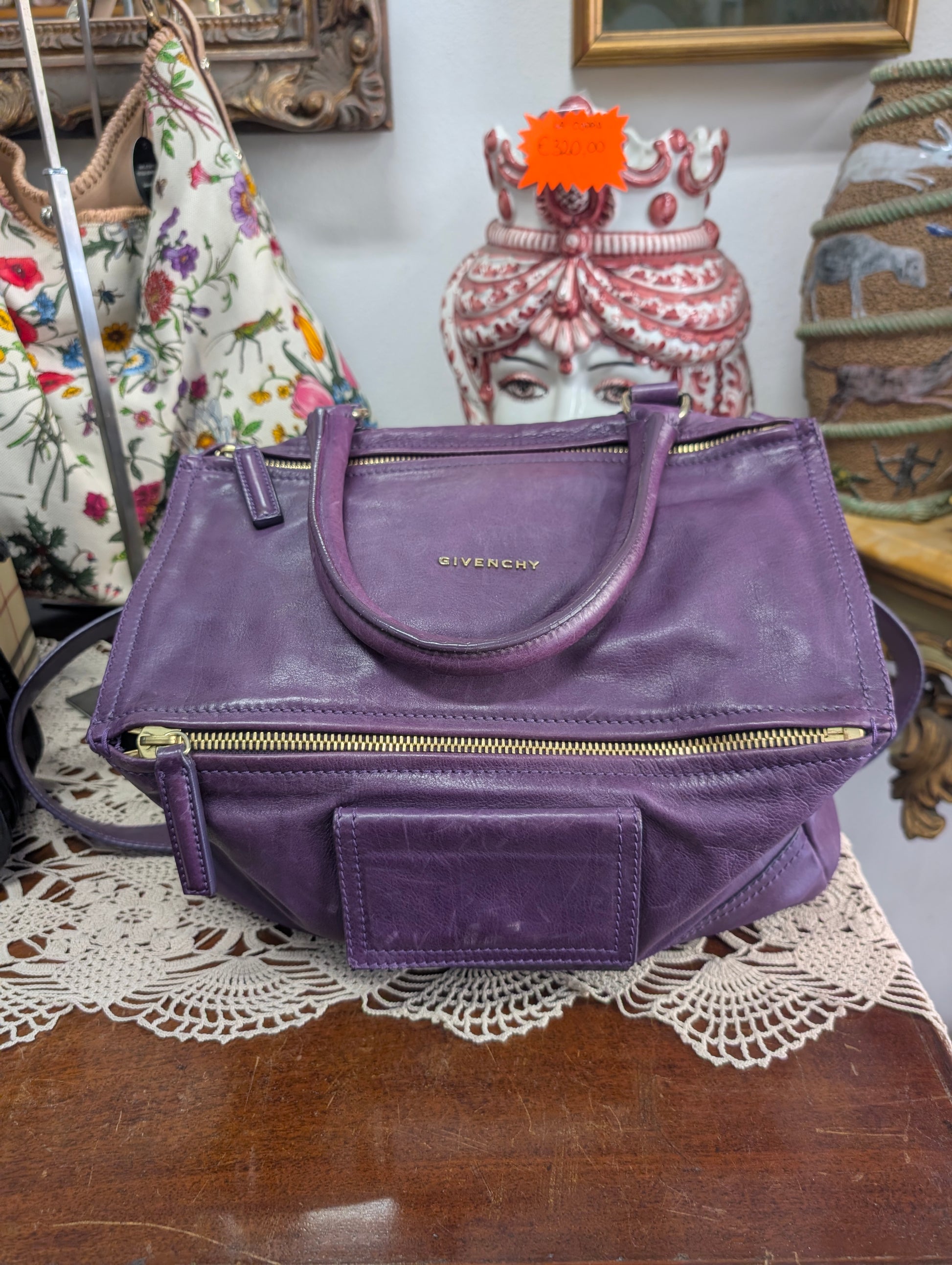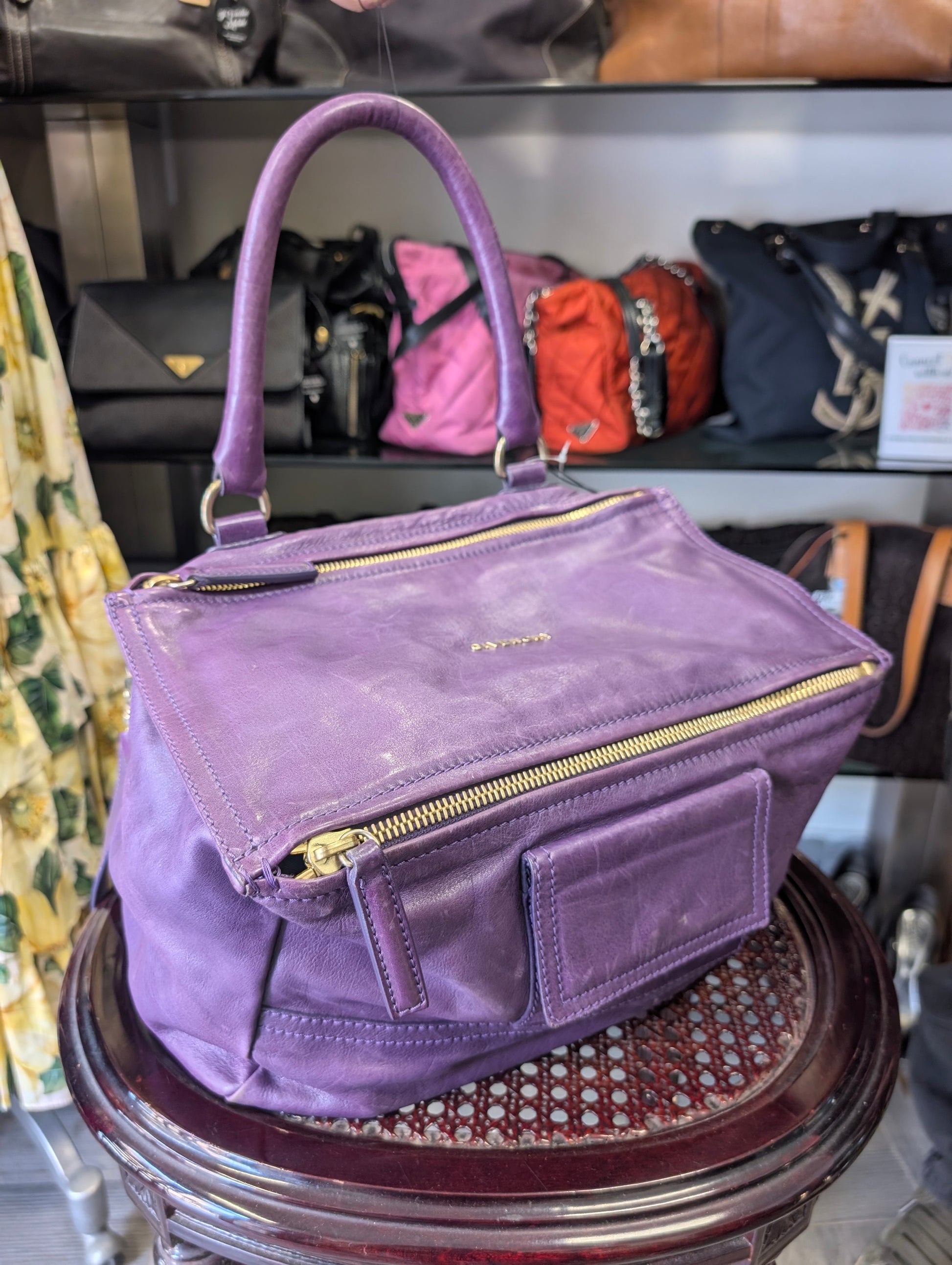 Iconica borsa di Givenchy, modello Pandora, in pelle viola. Buone condizioni generali, portabile sia a spalla che a tracolla.