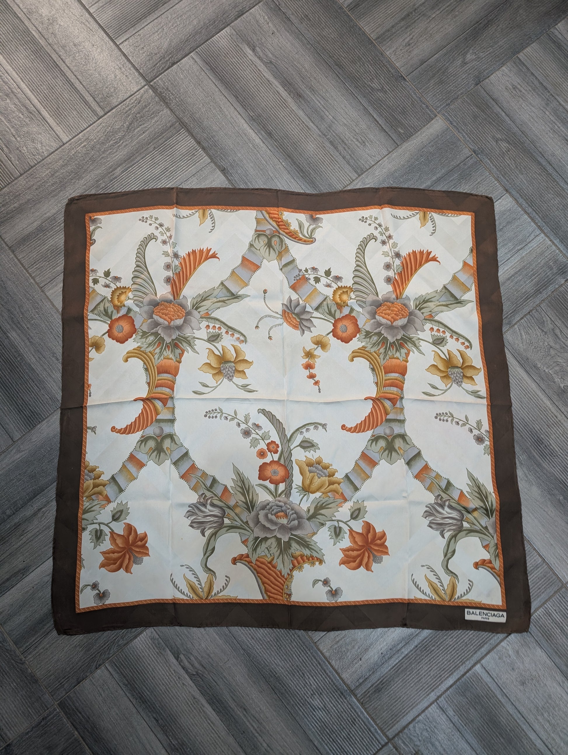 Foulard vintage in pura seta anni 70 di Balenciaga, ottime condizioni generali, qualche macchietta poco visibile.