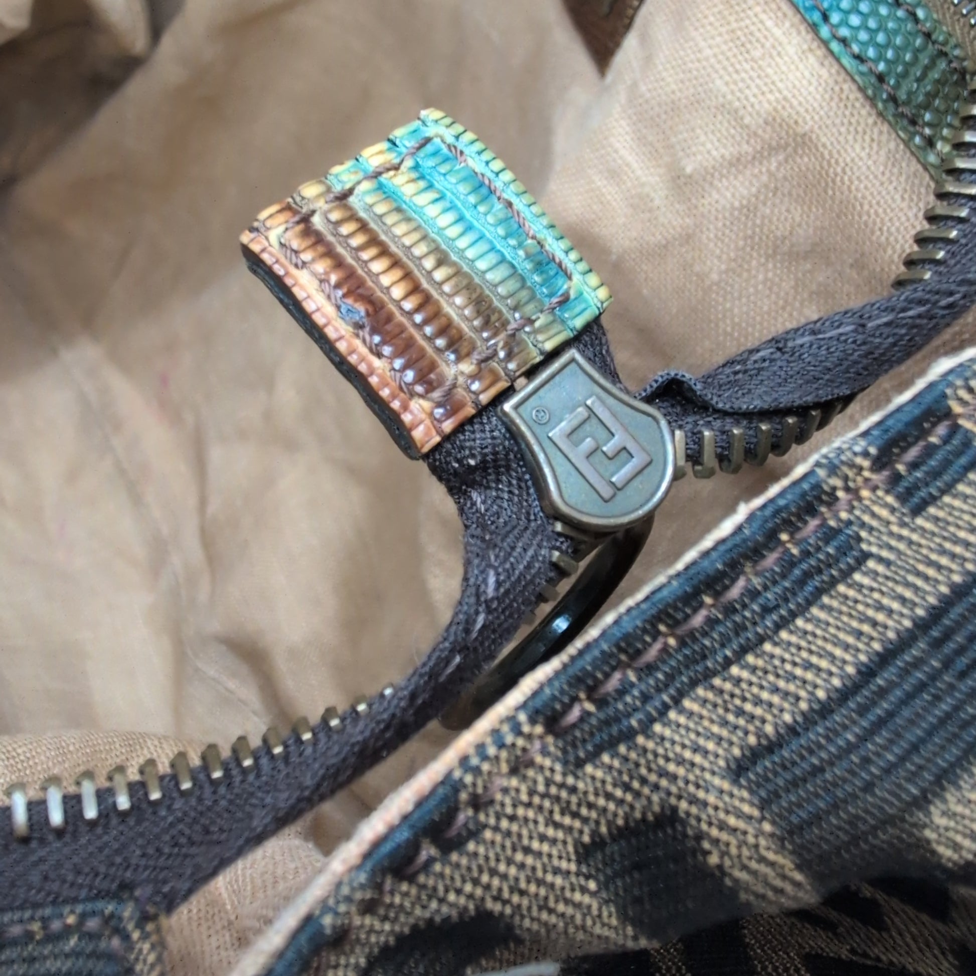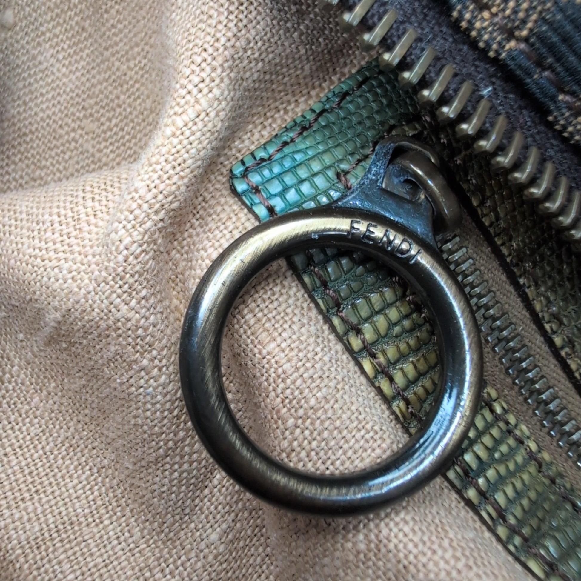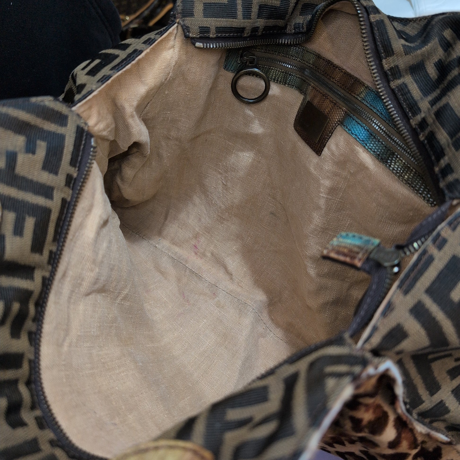 Borsa vintage di Fendi, primi anni 2000, modello Devil Trapezio in cavallino e dettagli in pelle di lucertola e logo FF zucca. Buone condizioni generali, i manici sono morbidi, così come la borsa che non presenta struttura. Chiusura con cerniera, codice seriale interno presente. Qualche segnetto del tempo nella norma, considerata la delicatezza della borsa. Doppi manici.
