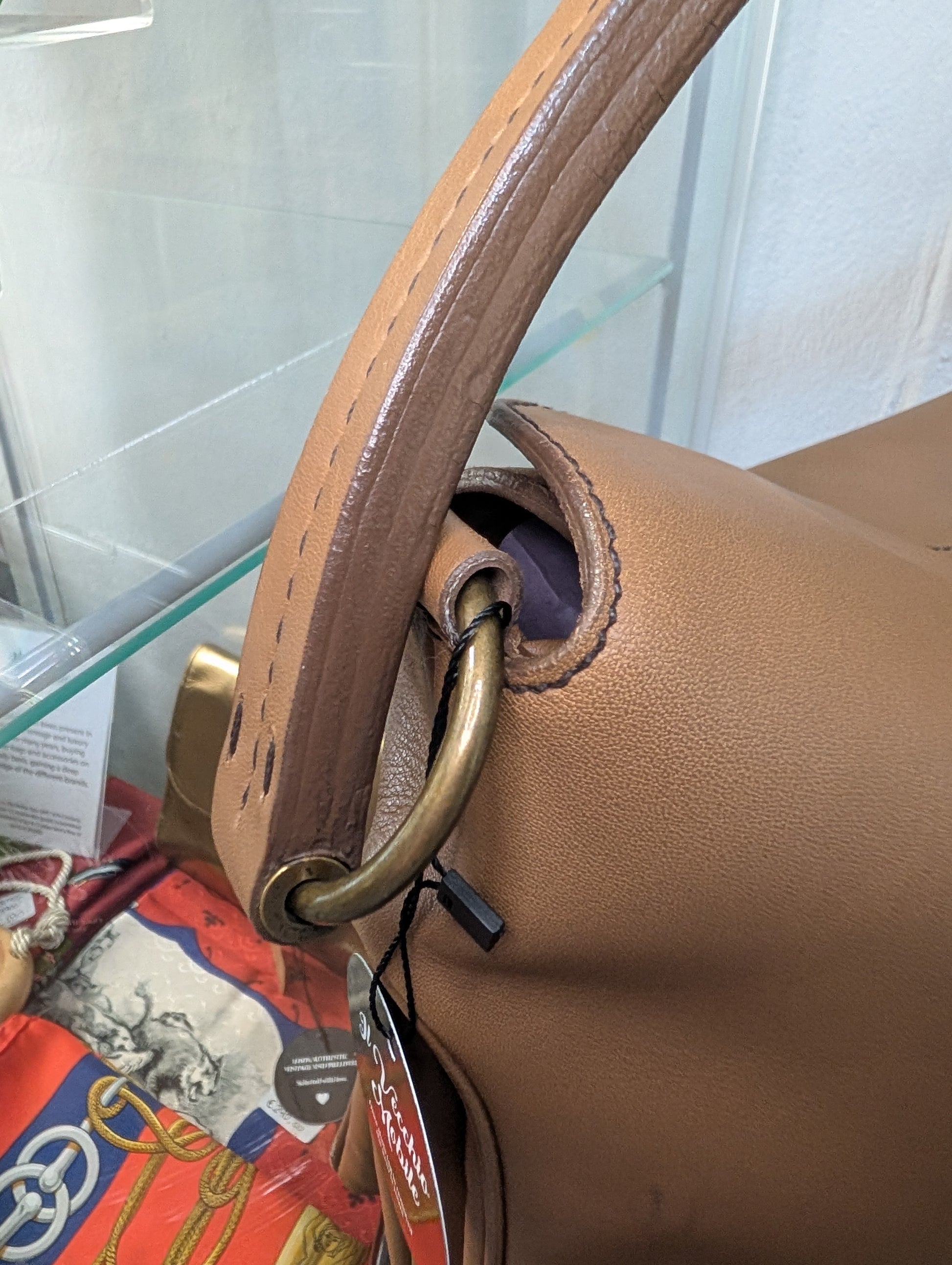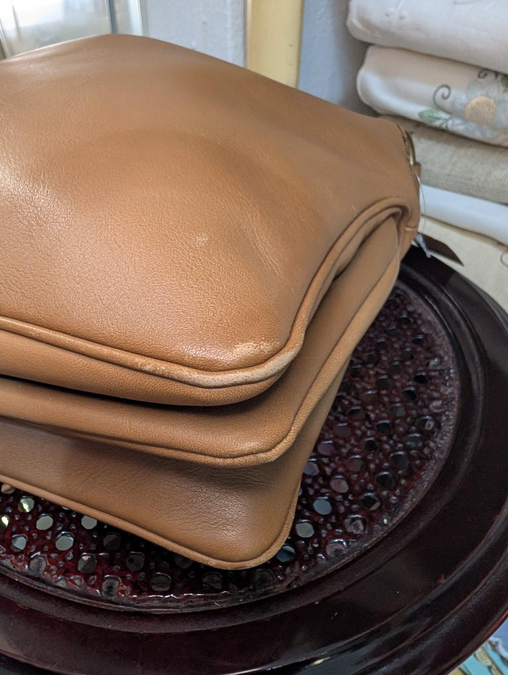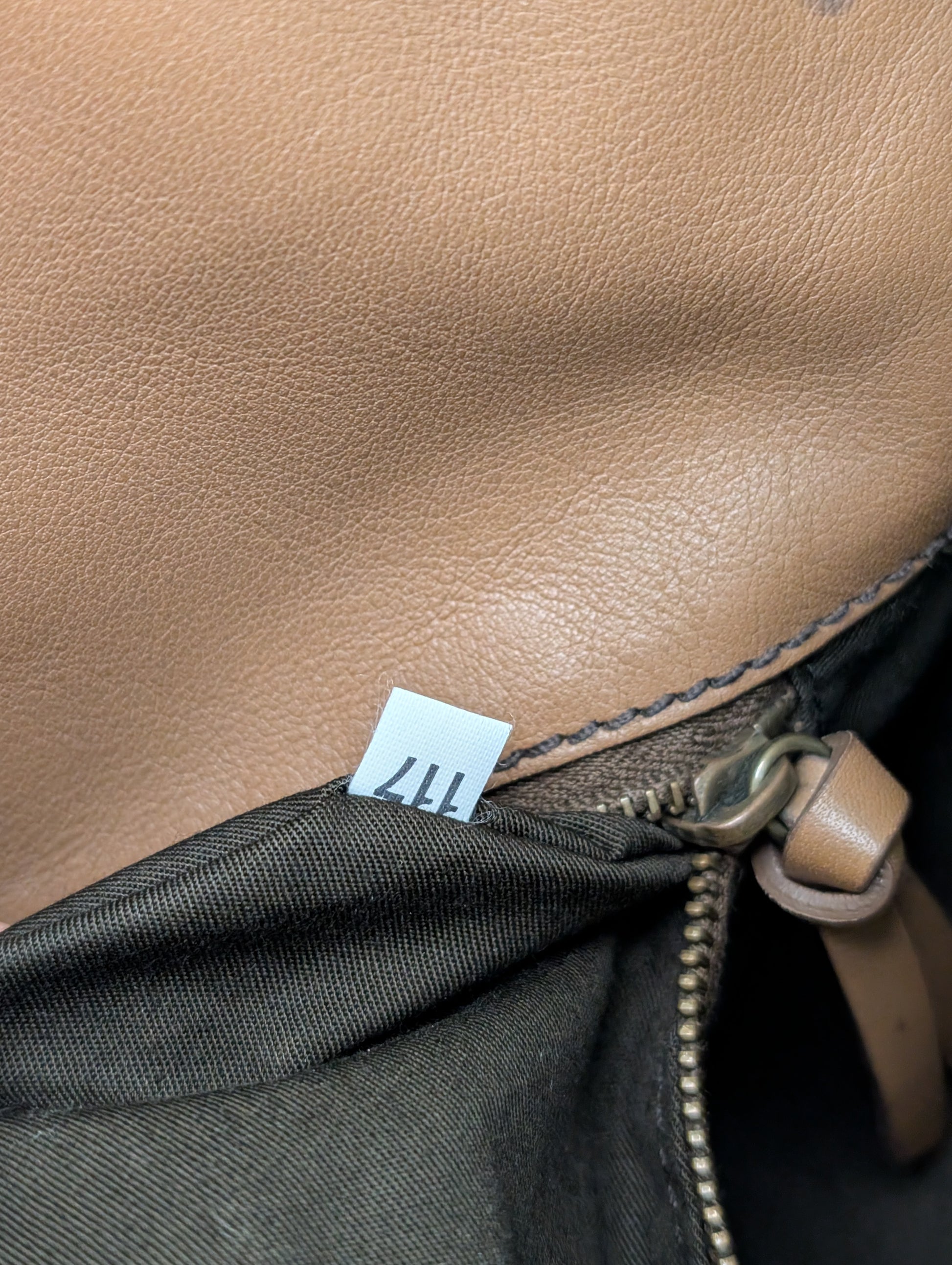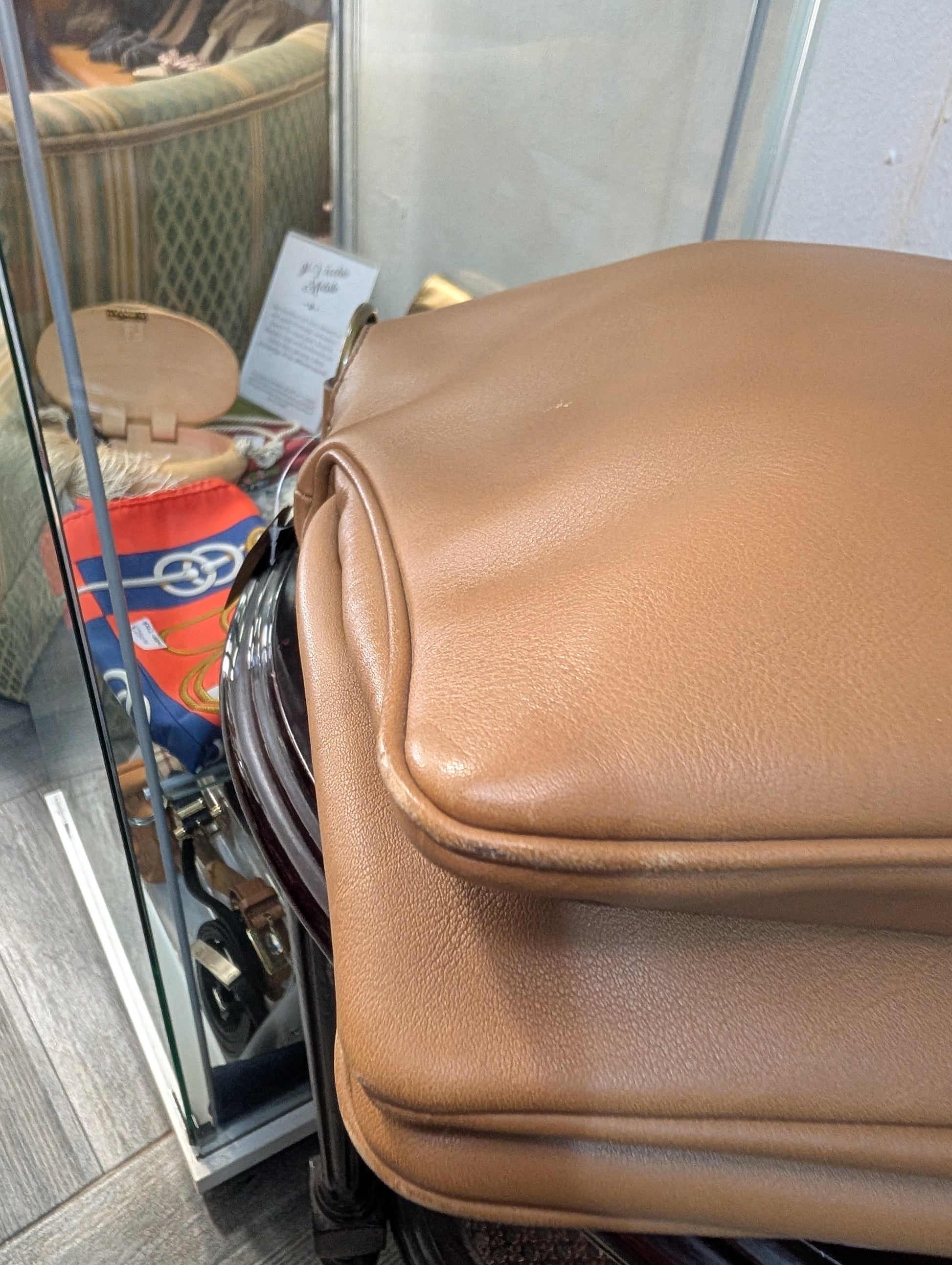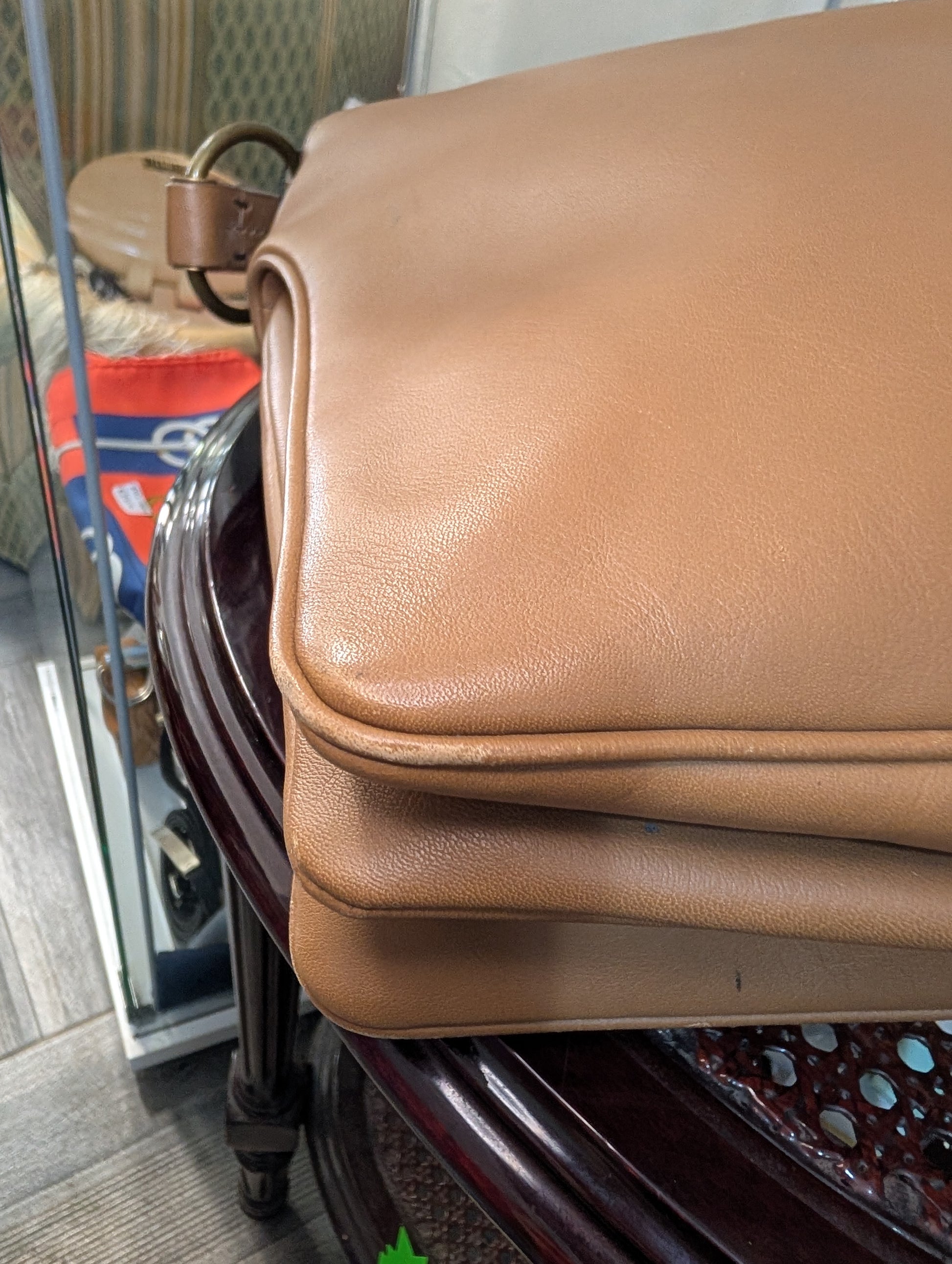 Unico manico, modello a soffietto, chiusura ad incastro, capiente e con vari scomparti interni. Morbidissima pelle beige/cammello. Logo Miu Miu impresso in basso sul fronte della borsa.