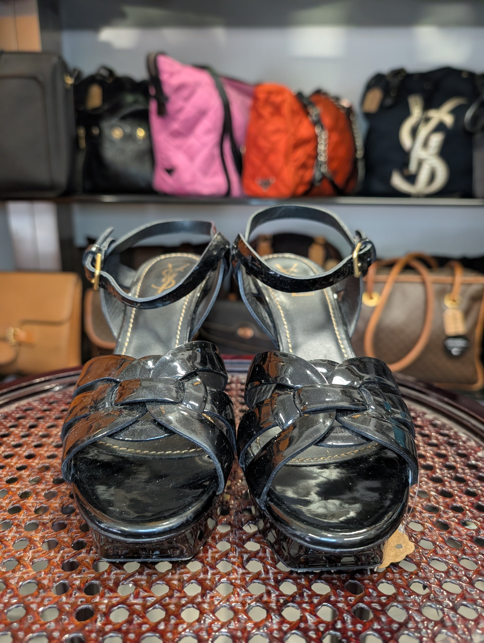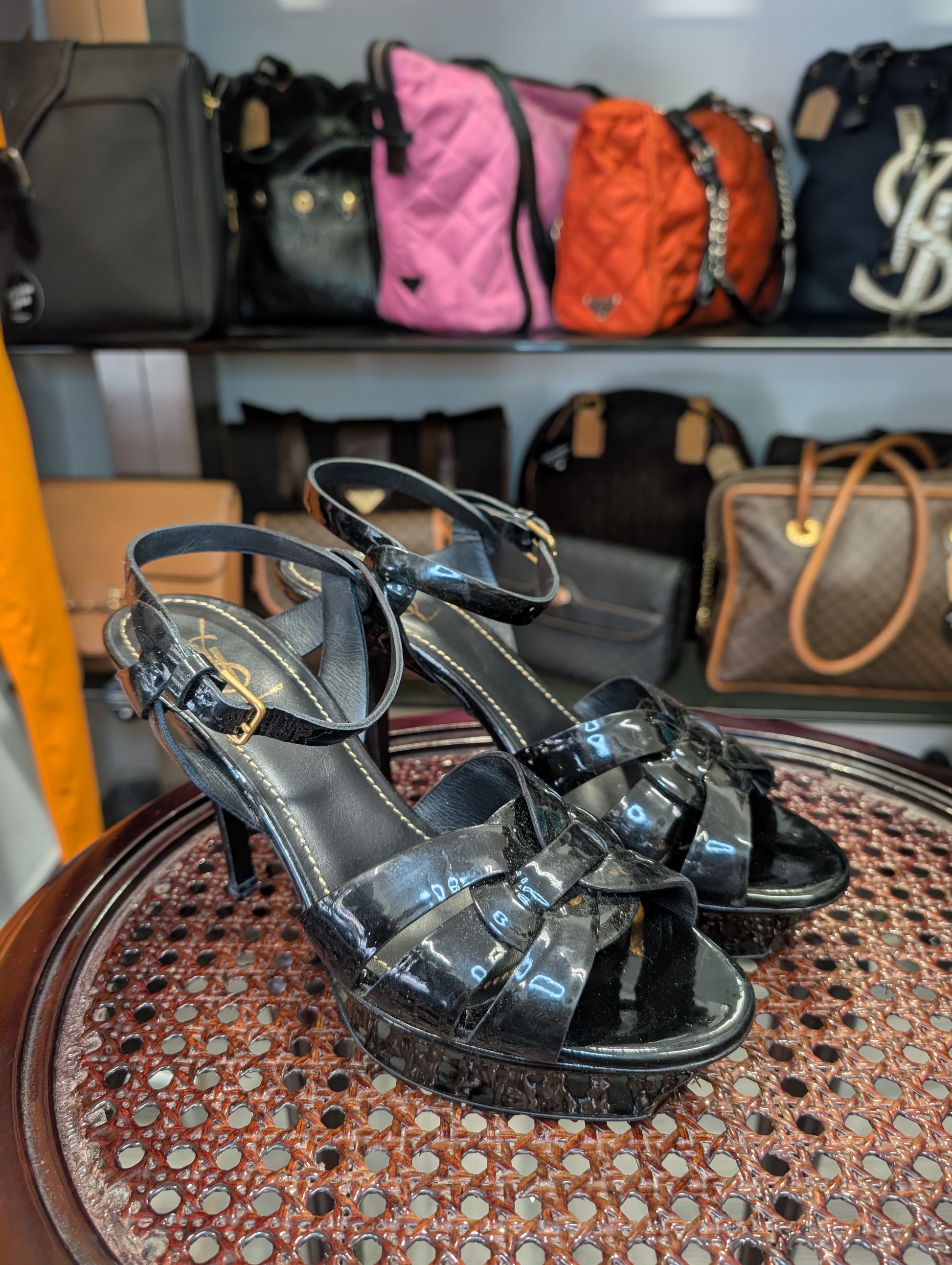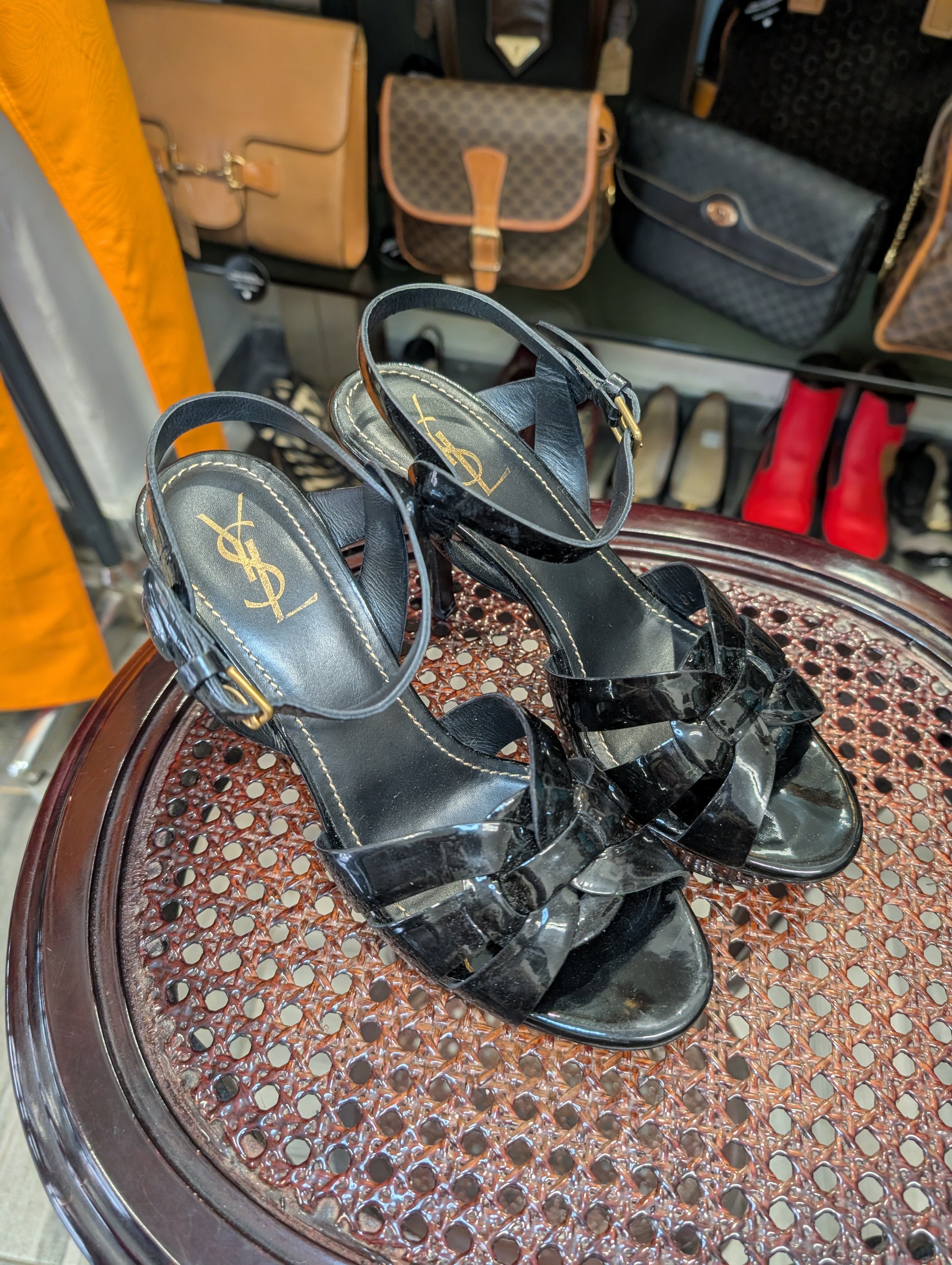 Iconiche e senza tempo questi sandali con tacco di Yves Saint Laurent.