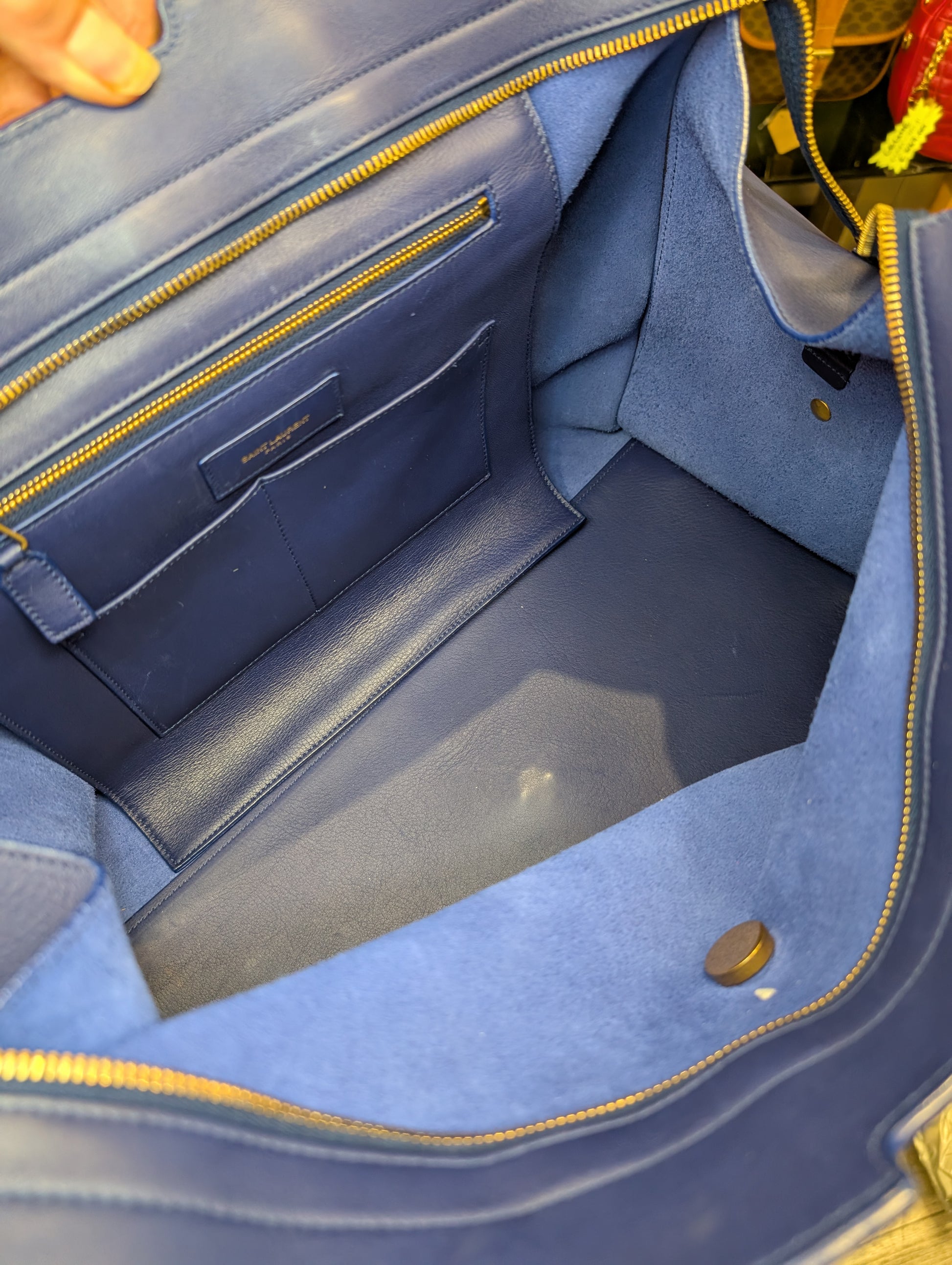 Borsa di Saint Laurent, modello Cabas Chyc, in morbidissima pelle colore blu elettrico.