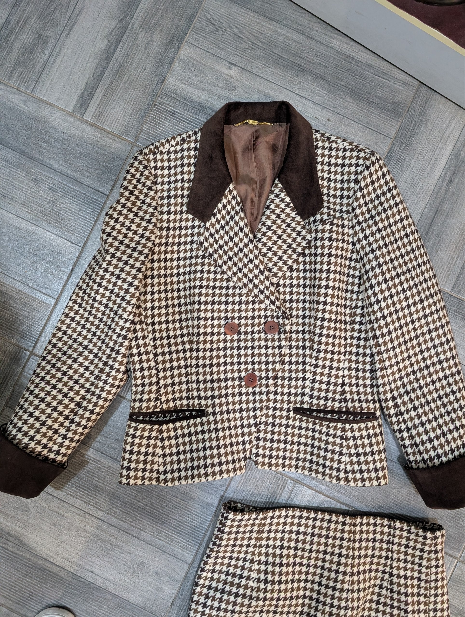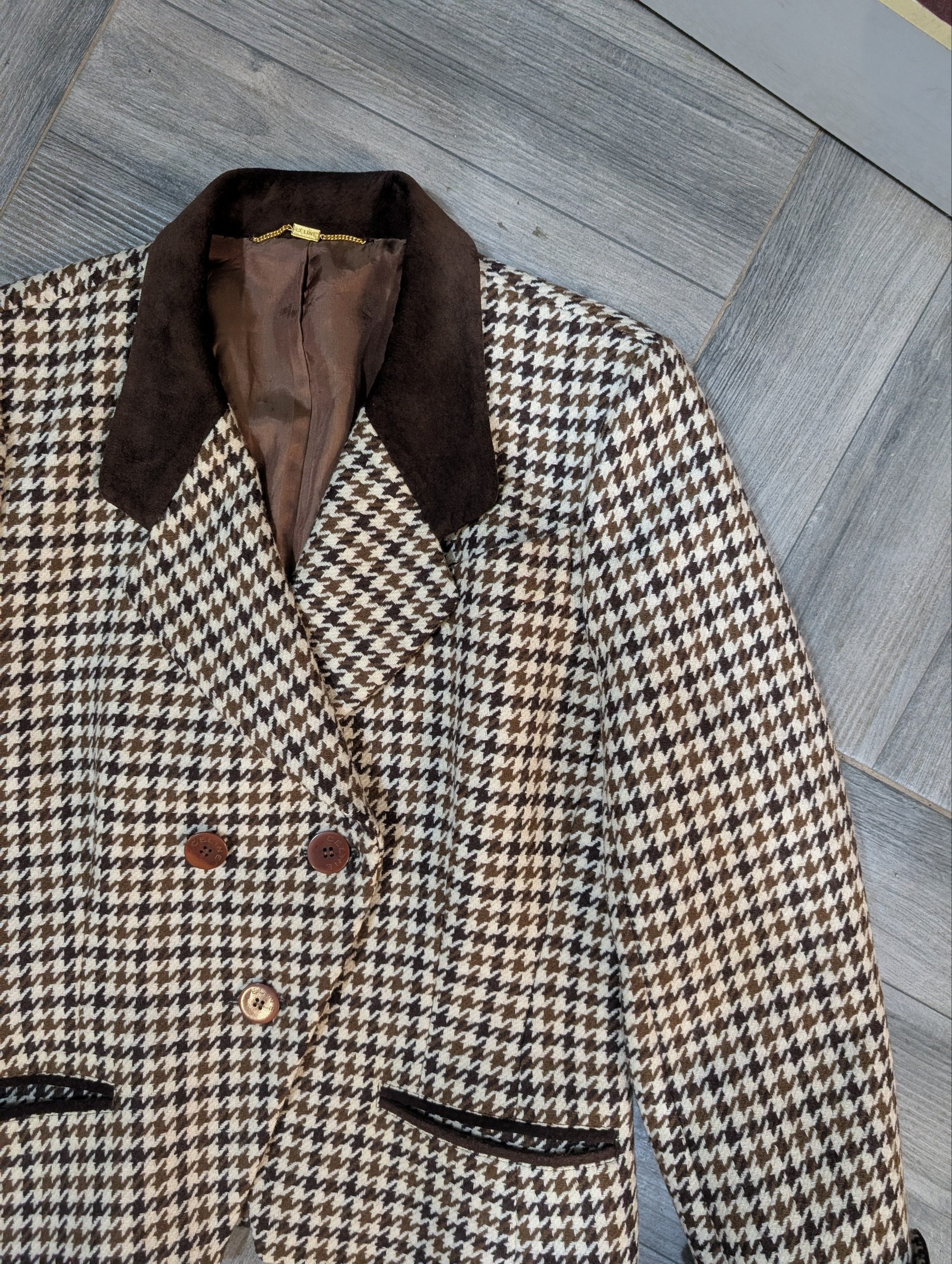 Tailleur vintage di Celine, anni 80 circa, composto da gonna e giacca. Eccellenti condizioni generali, taglia riportata 46 italiana. Purtroppo mancante la composizione, ma sicuramente un 100% lana.
