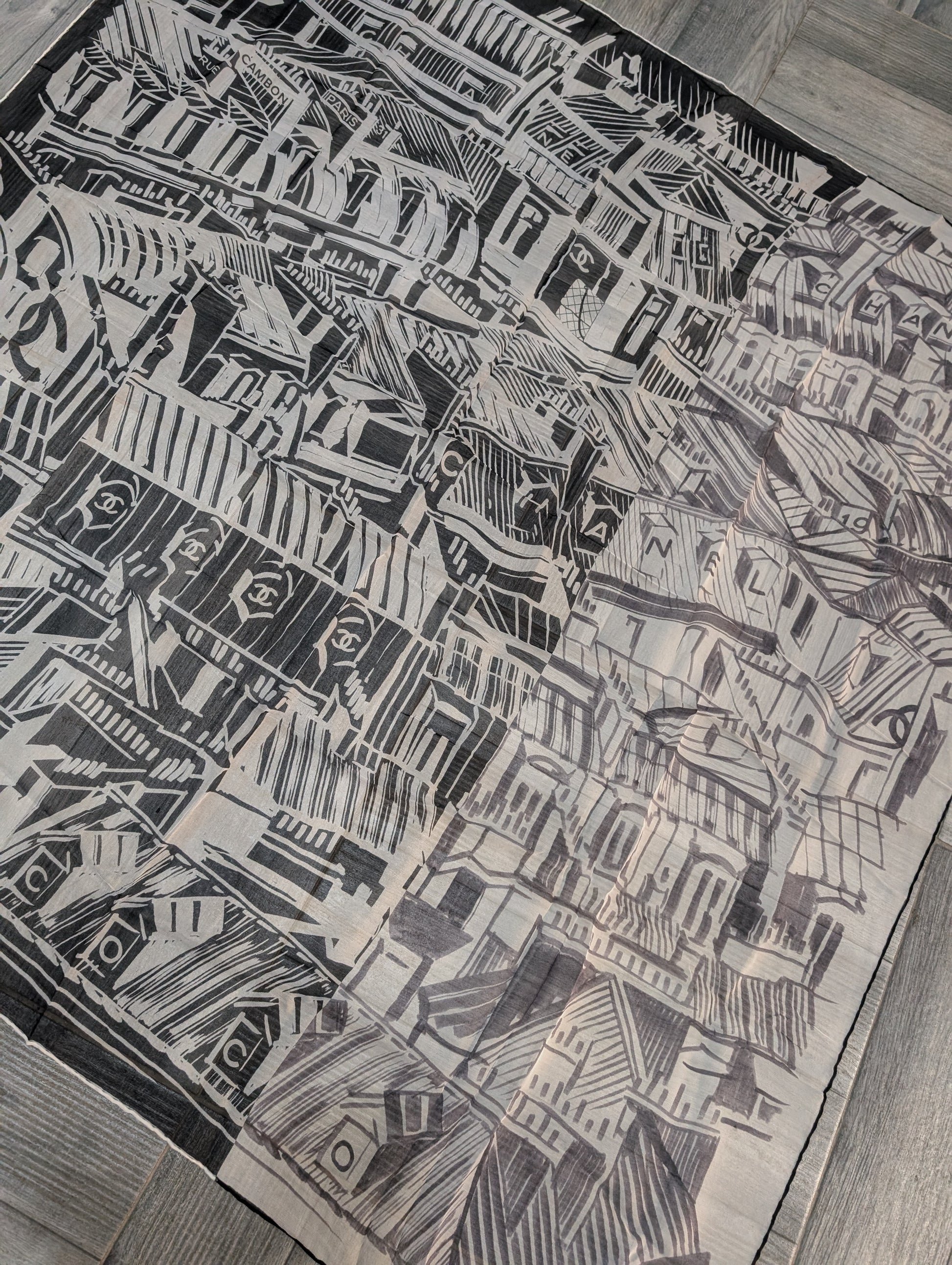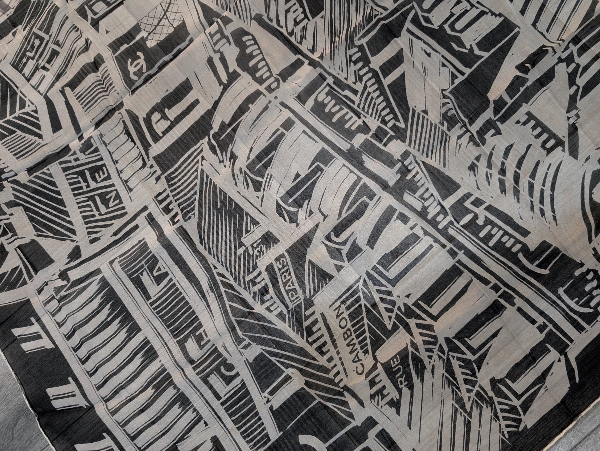Raffigurante i tetti di Parigi con loghi Chanel e Rue Cambon, dove si trova la storica boutique e l'appartamento di Coco Chanel.