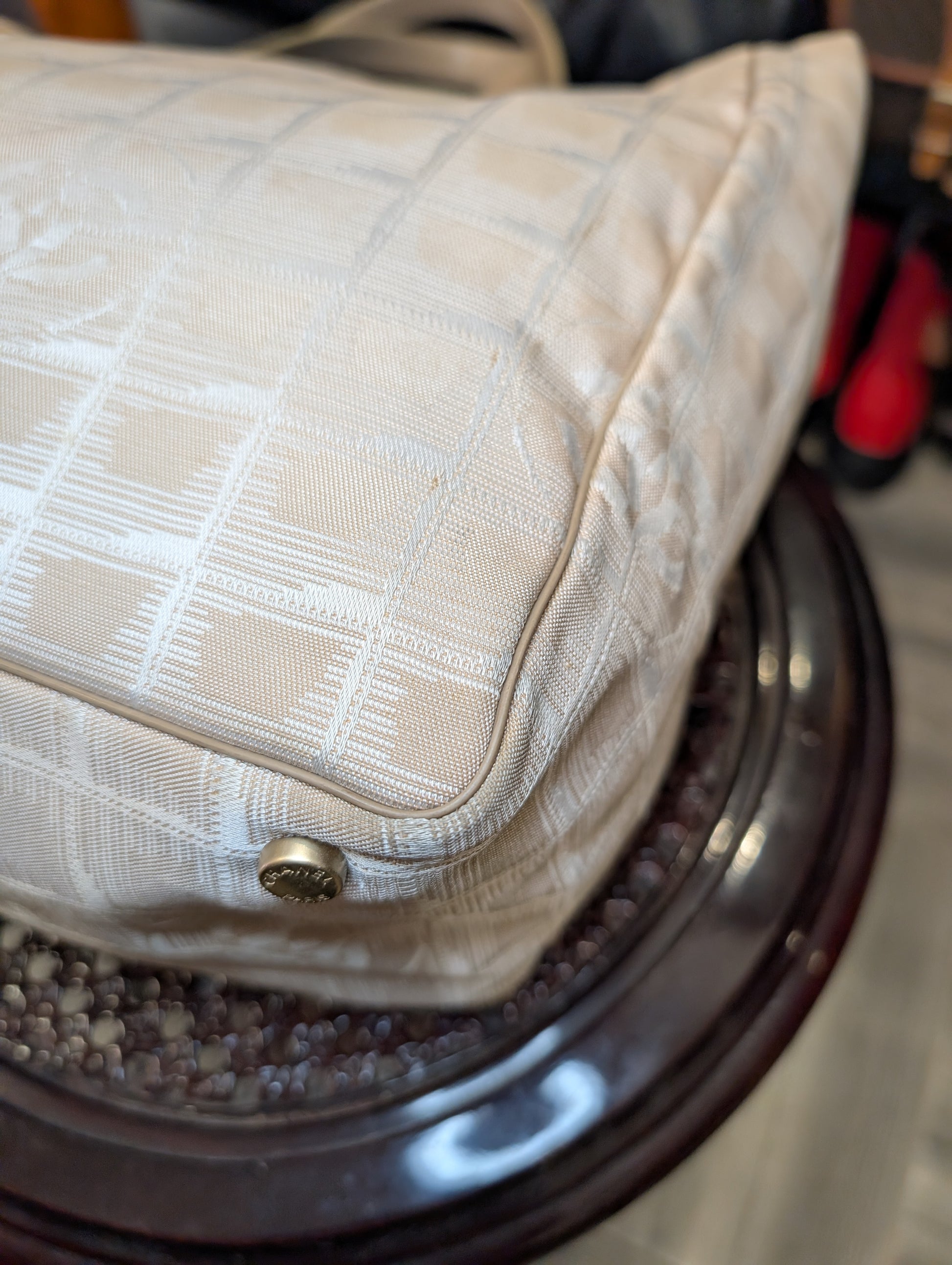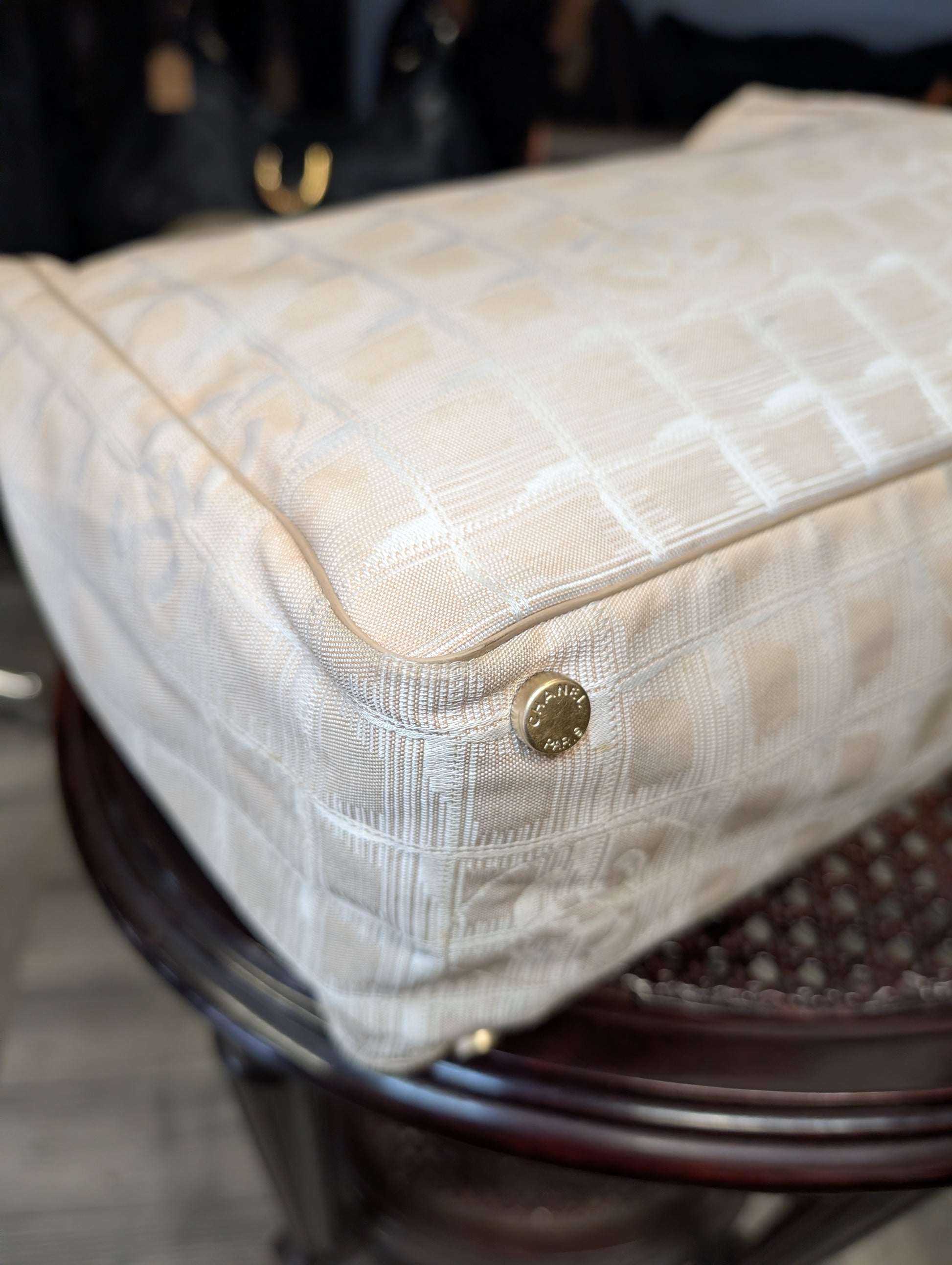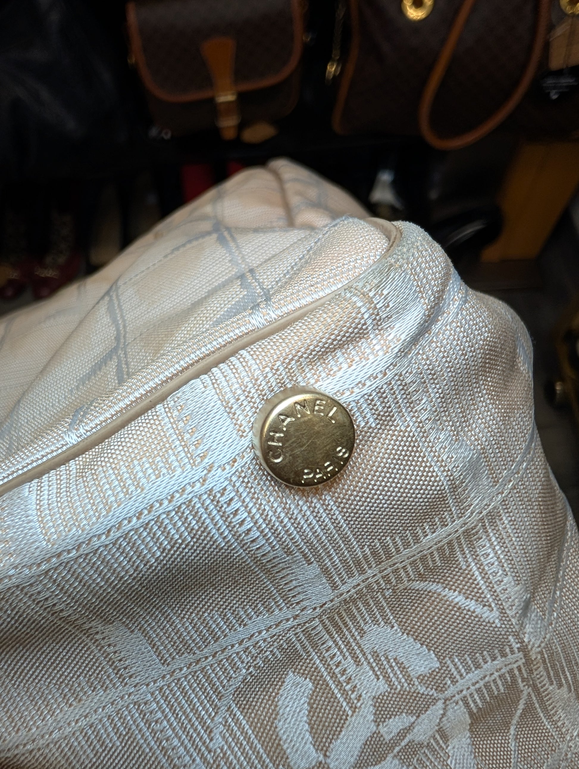 Borsa Chanel modello Travel Line beige con doppi manici.