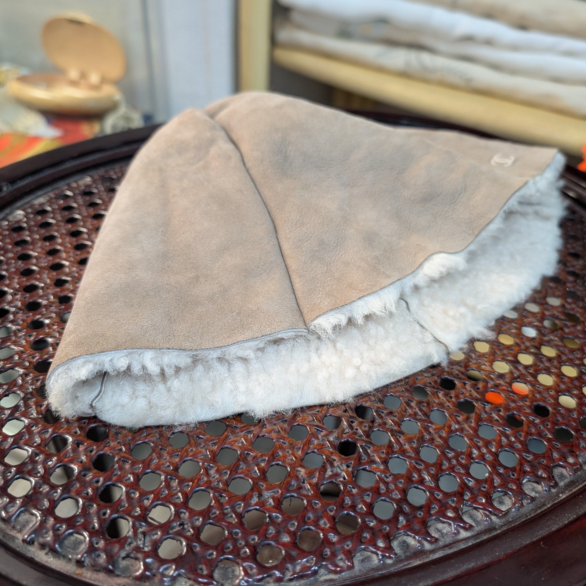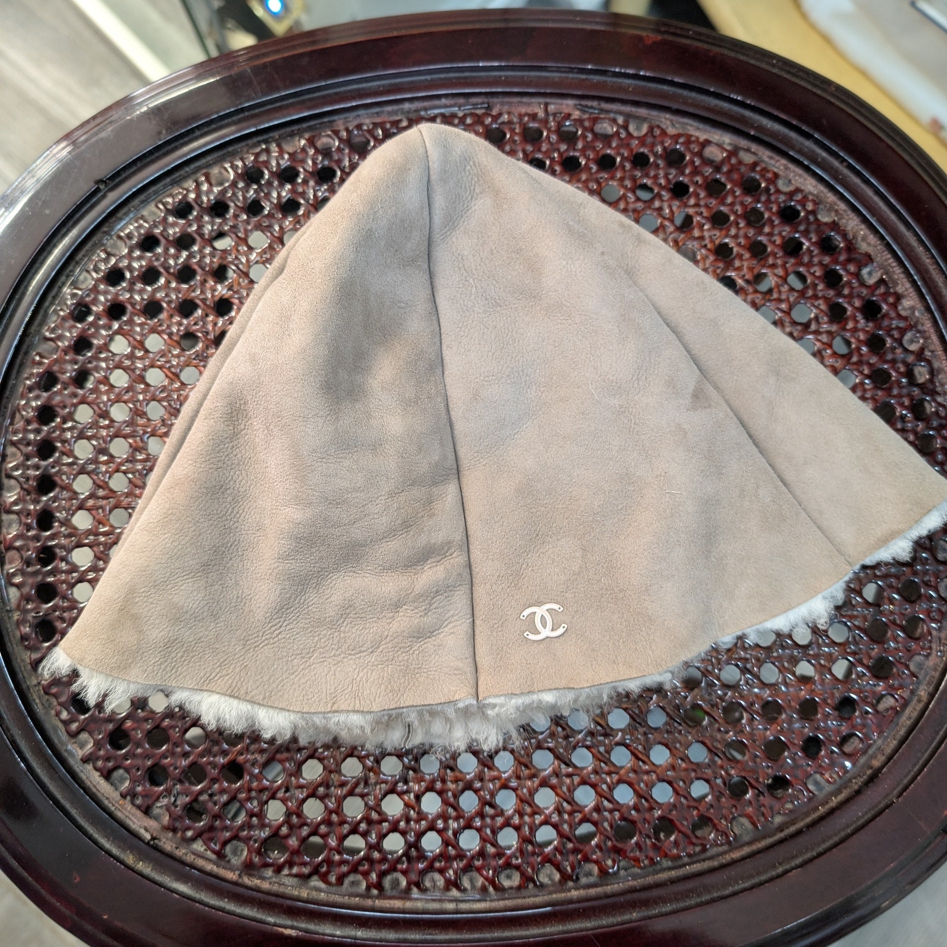 Cappellino vintage di Chanel, in montone e logo CC argento. Buone condizioni generali, il classico beanie.