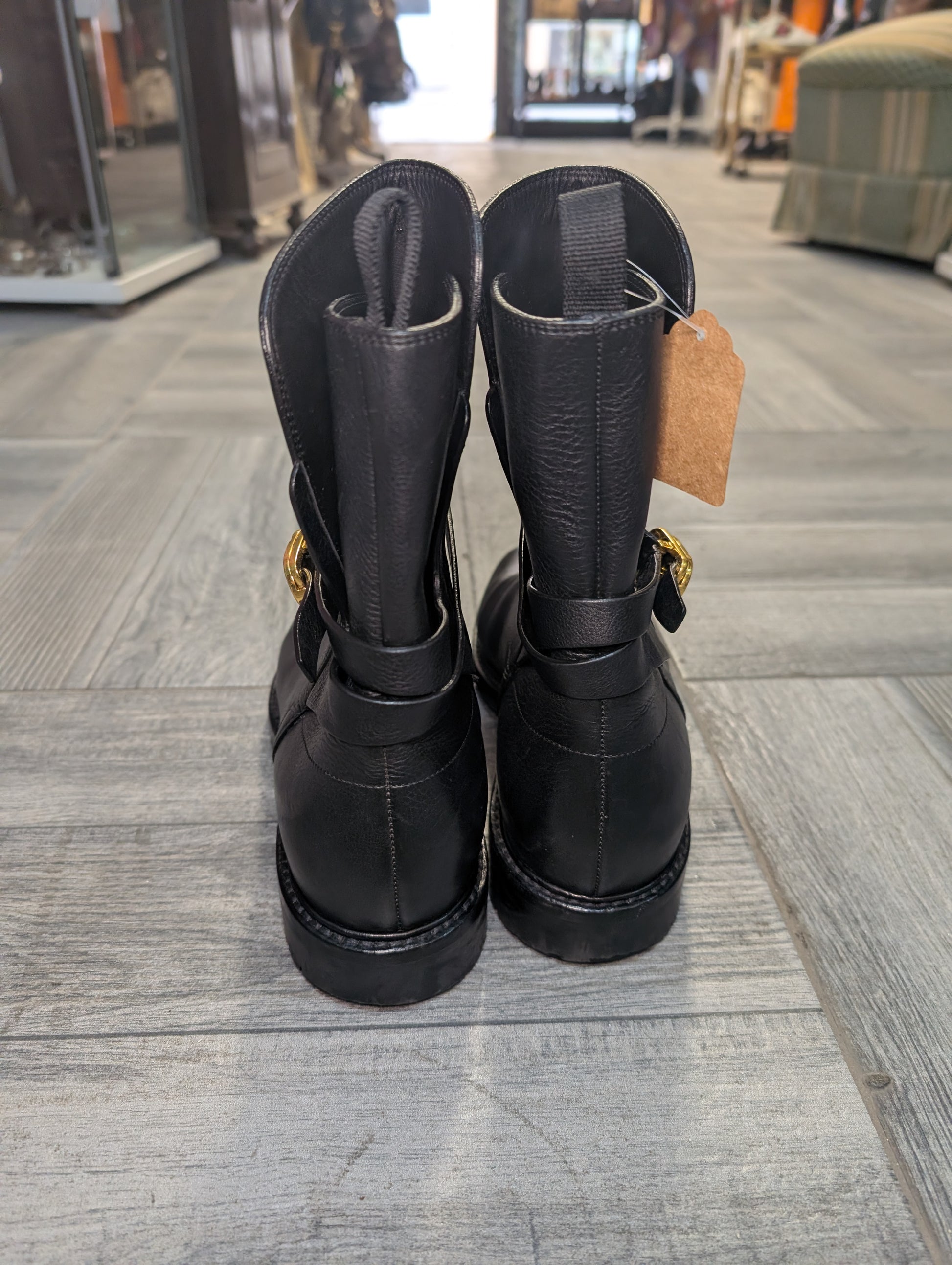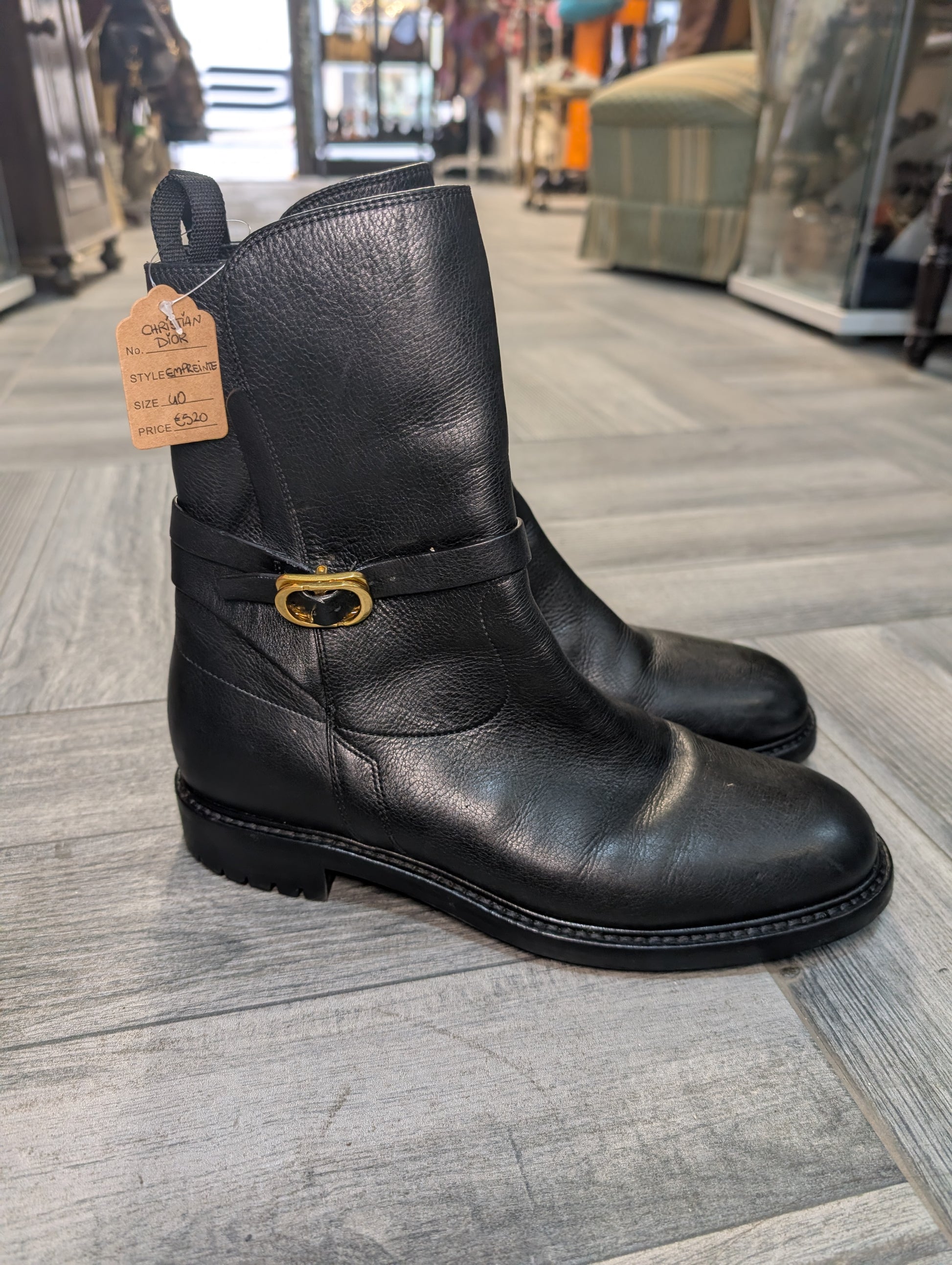 Stivaletti in pelle nera di Christian Dior, anno 2020, ottime condizioni generali. Fibbia colore oro, e suola con l'iconica stella bianca. Modello Empreinte.