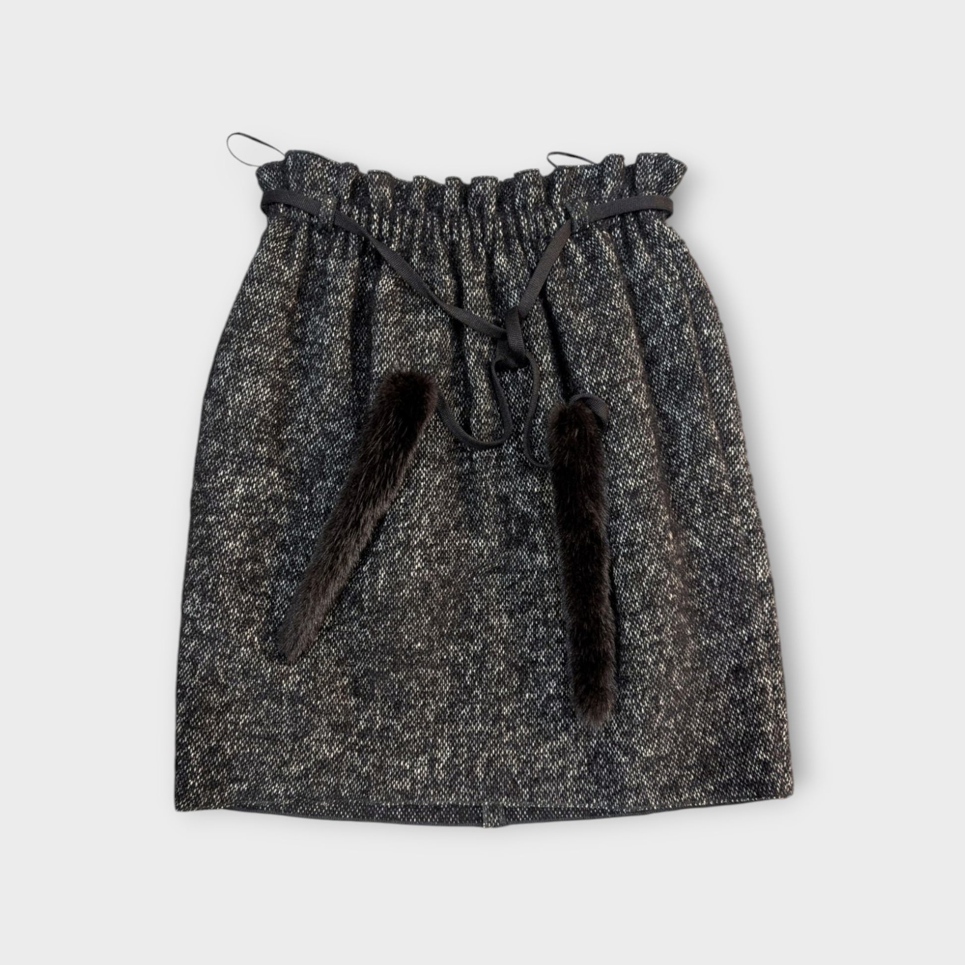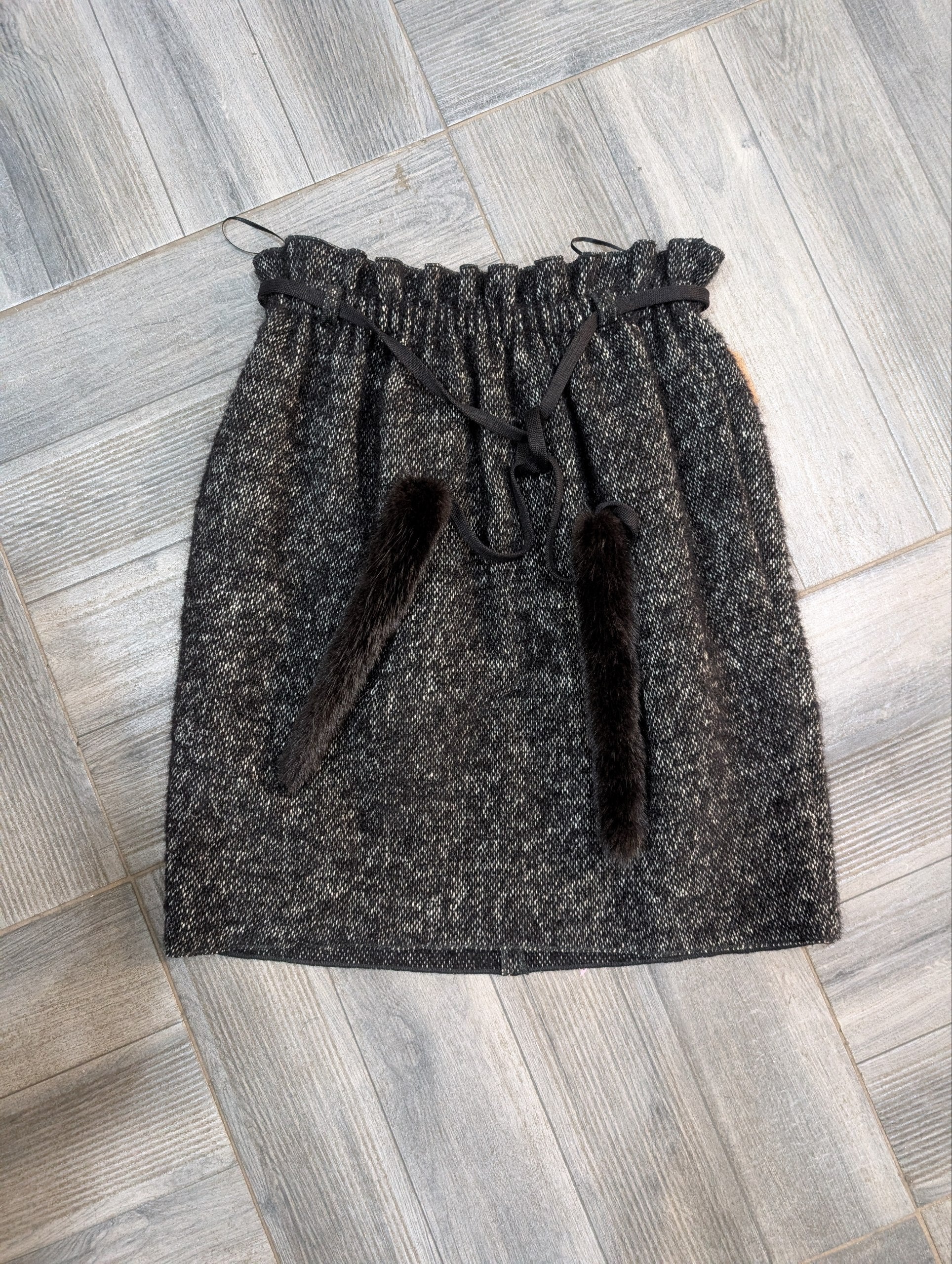 Gonna vintage primi anni 2000 di Dolce e Gabbana, caldissima e perfetta per le serate più fredde. Presenta una cinturina con visone, e la sua composizione è di: 52% lana, 12% acrilico, 11% alpaca, 8% nylon ed 8% cotone.