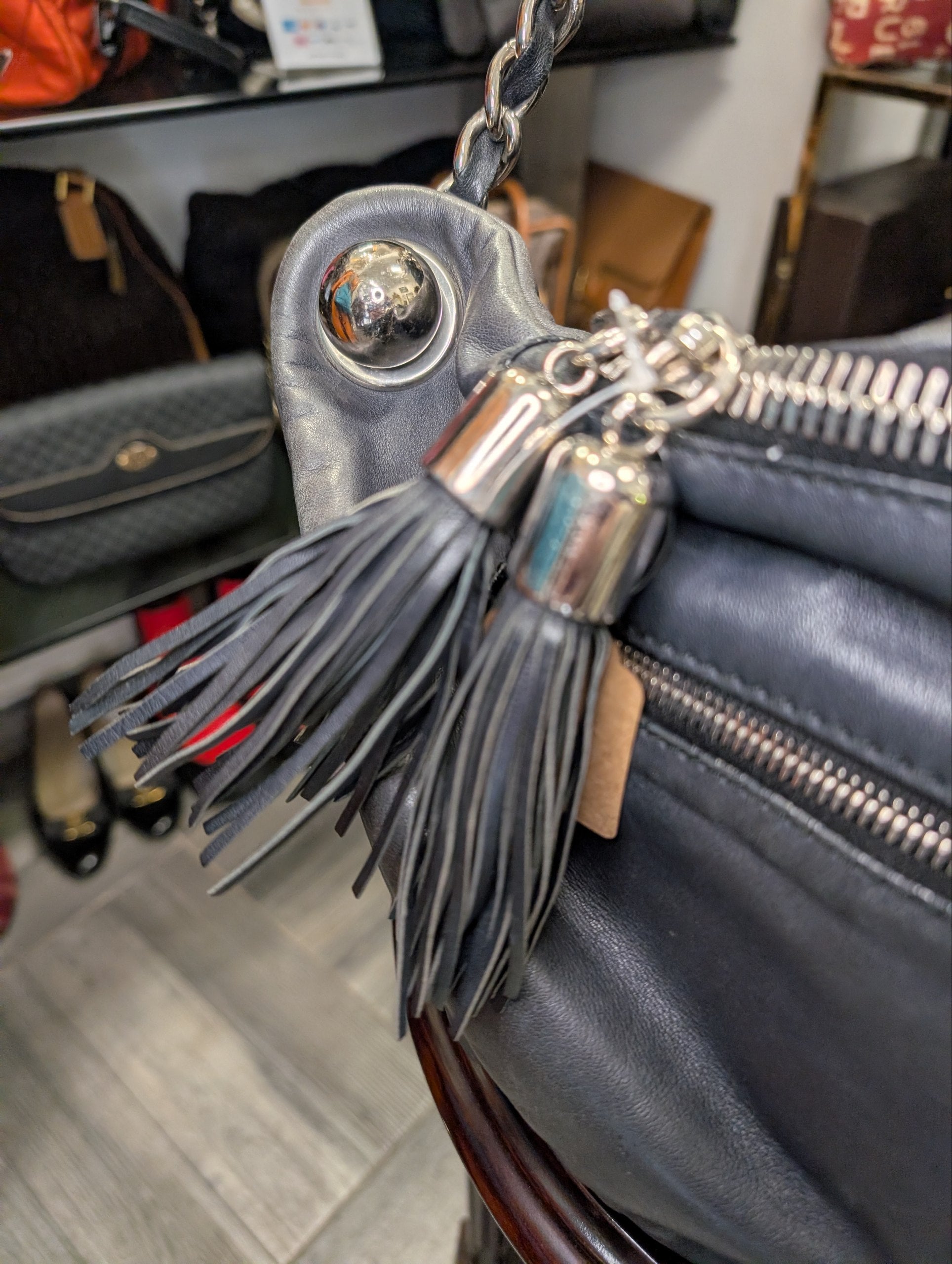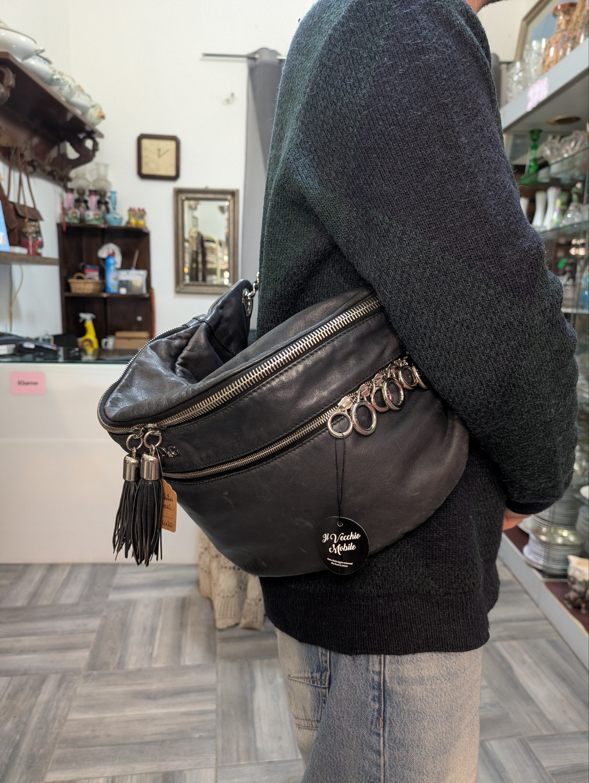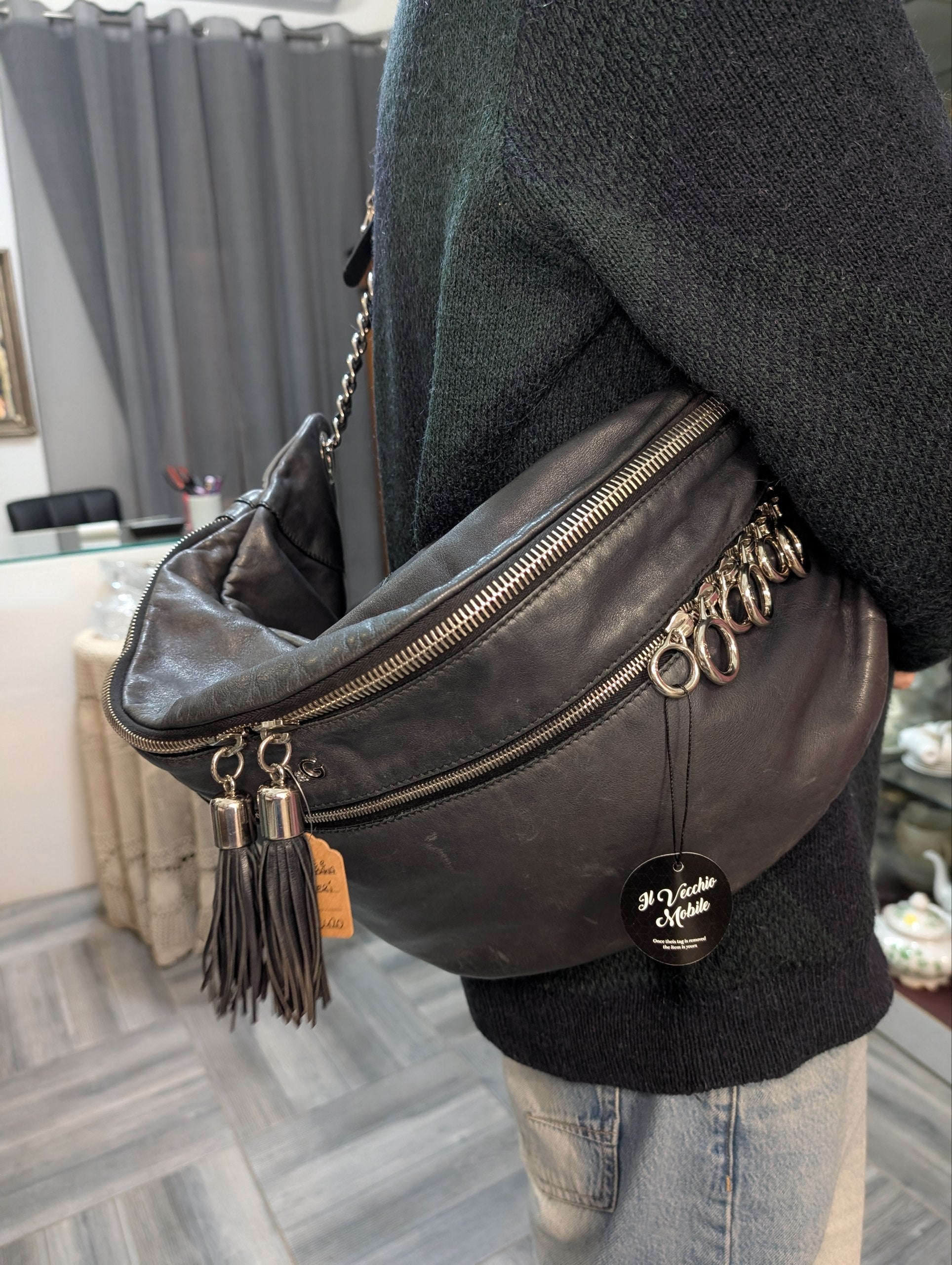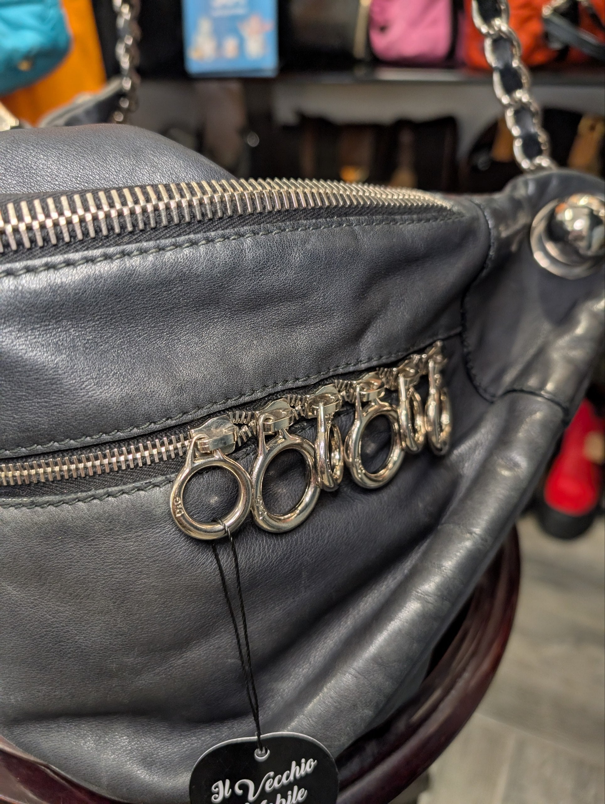 Borsa vintage primi anni 2000 di Dolce & Gabbana, modello Jeri, in pelle liscia nera. Portabile come monospalla, davvero capiente, comoda e d'effetto. Presenta il logo D&G sul fronte della borsa in metalleria argentata, e varie cerniere, principalmente per abbellimento.