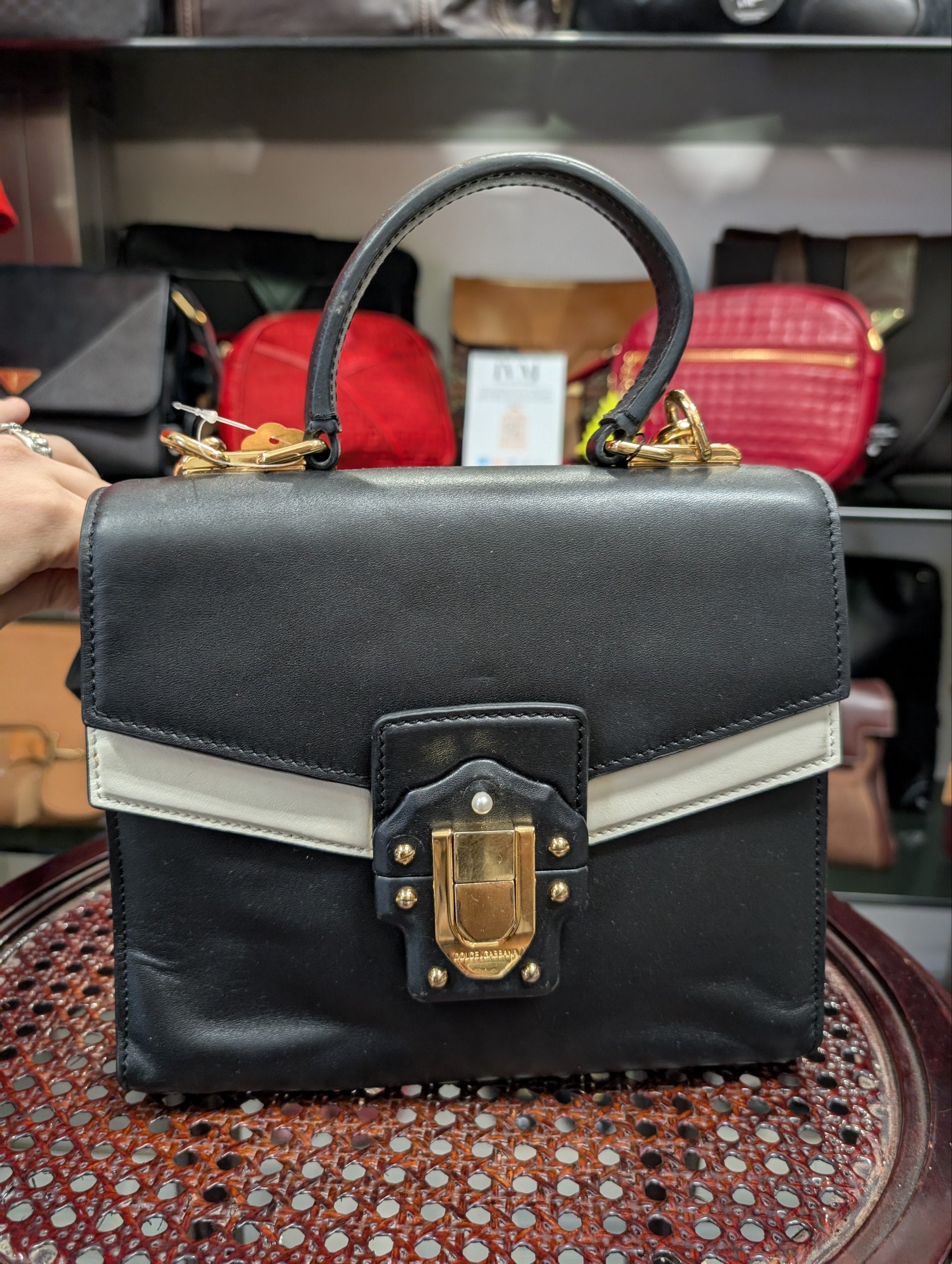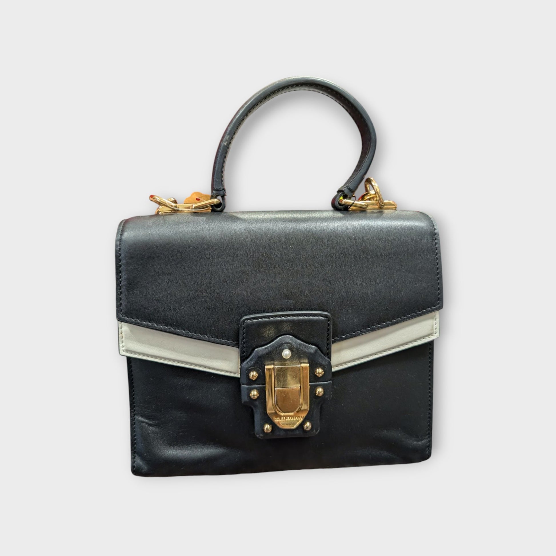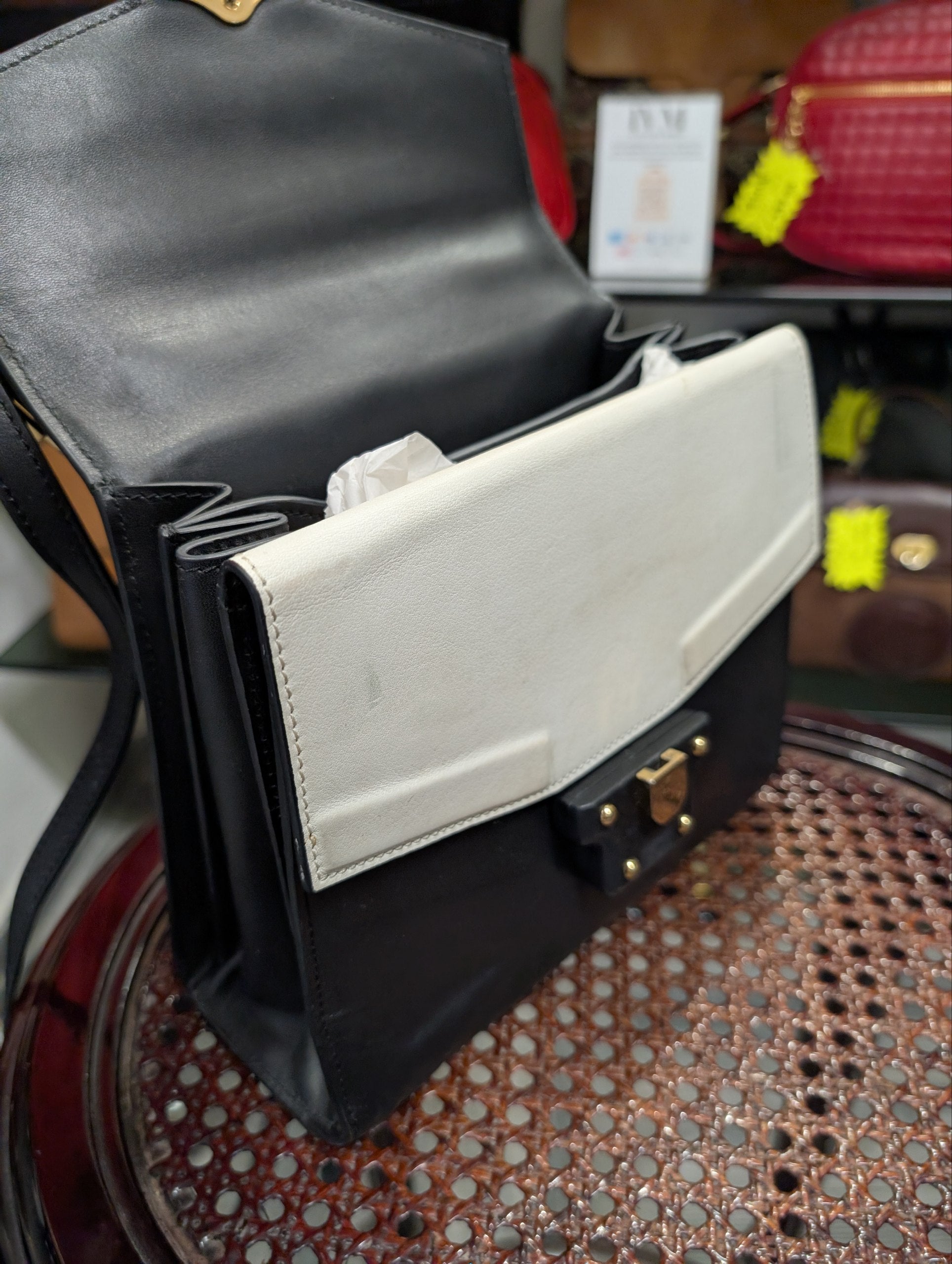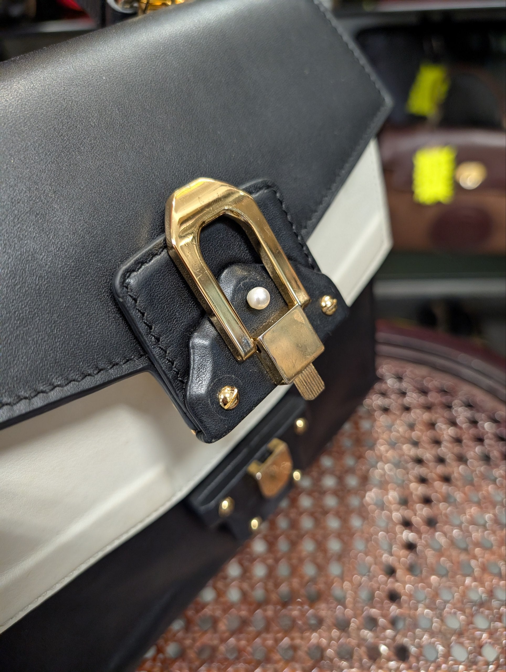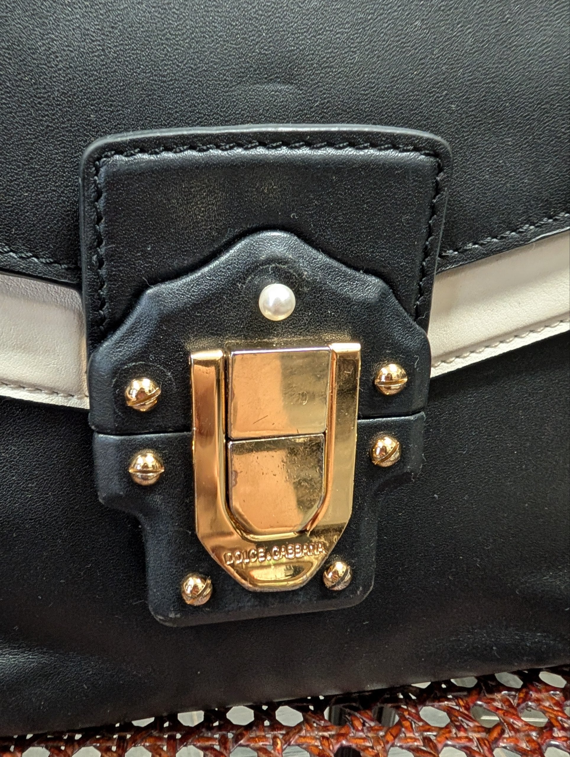 Borsa vintage di Dolce e Gabbana, modello Lucia, in pelle liscia nera e bianca.