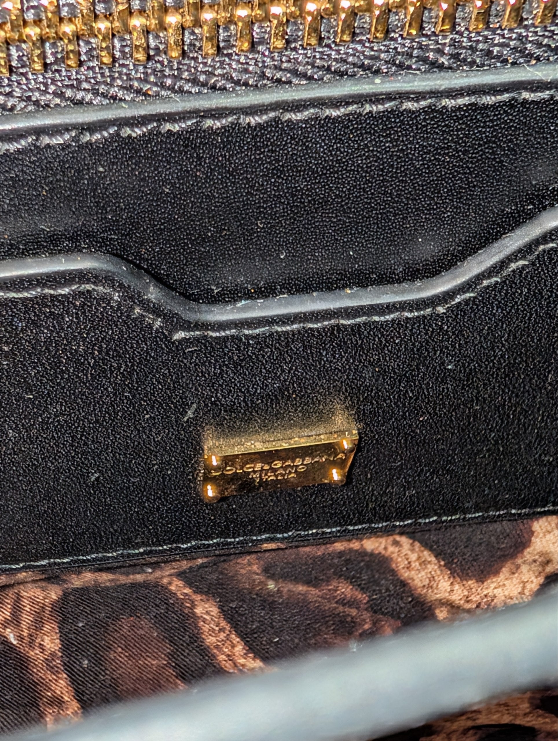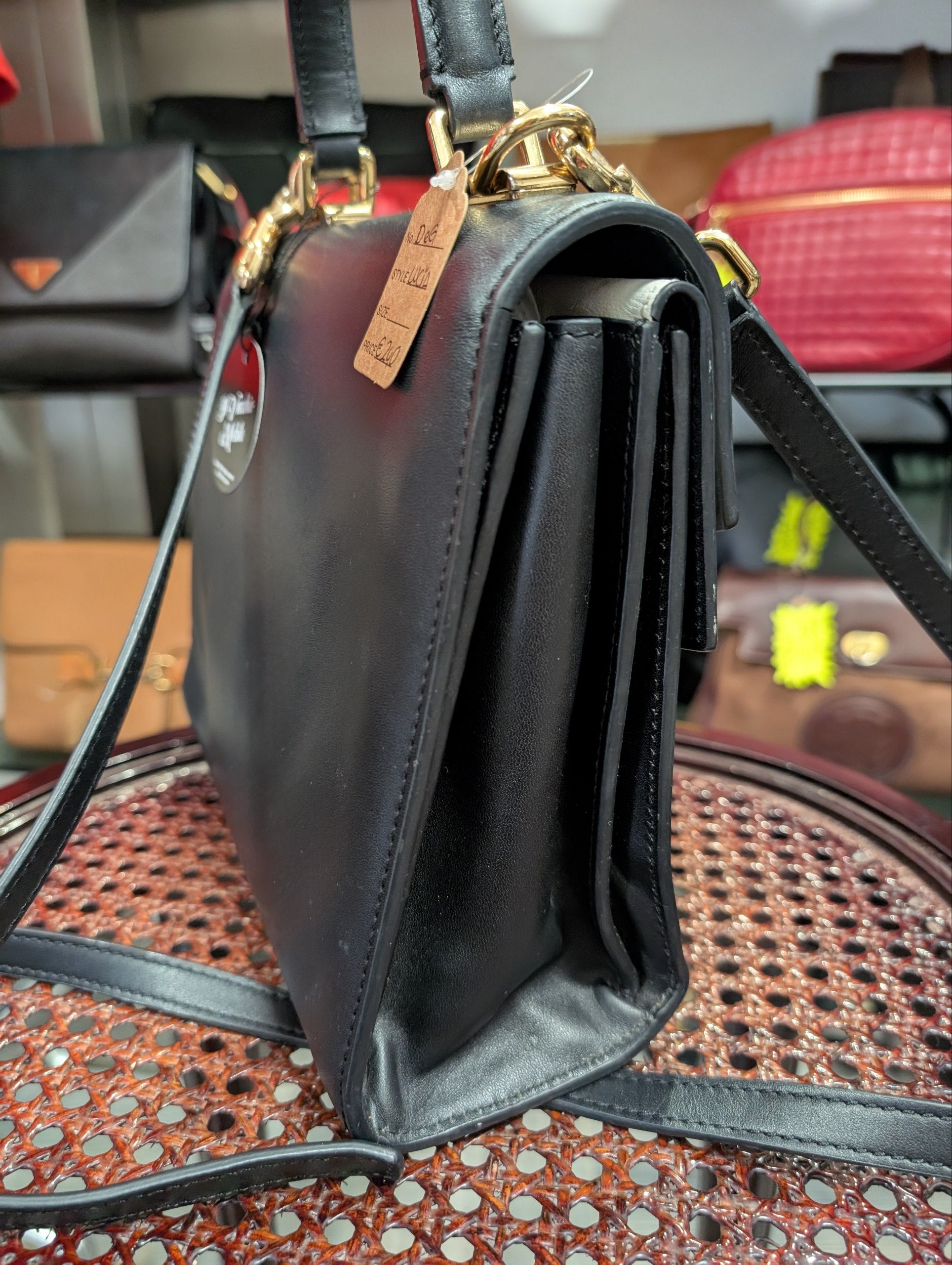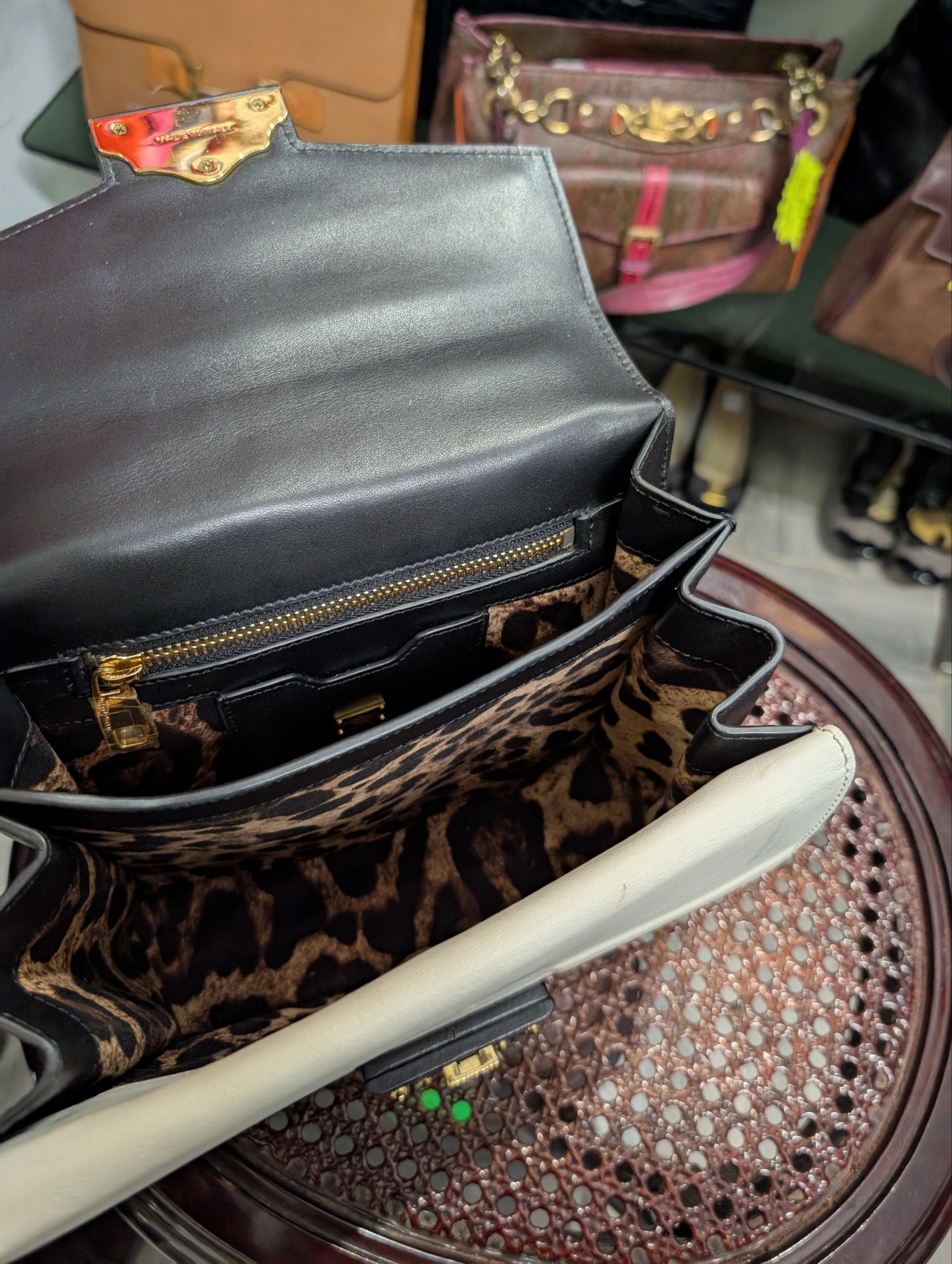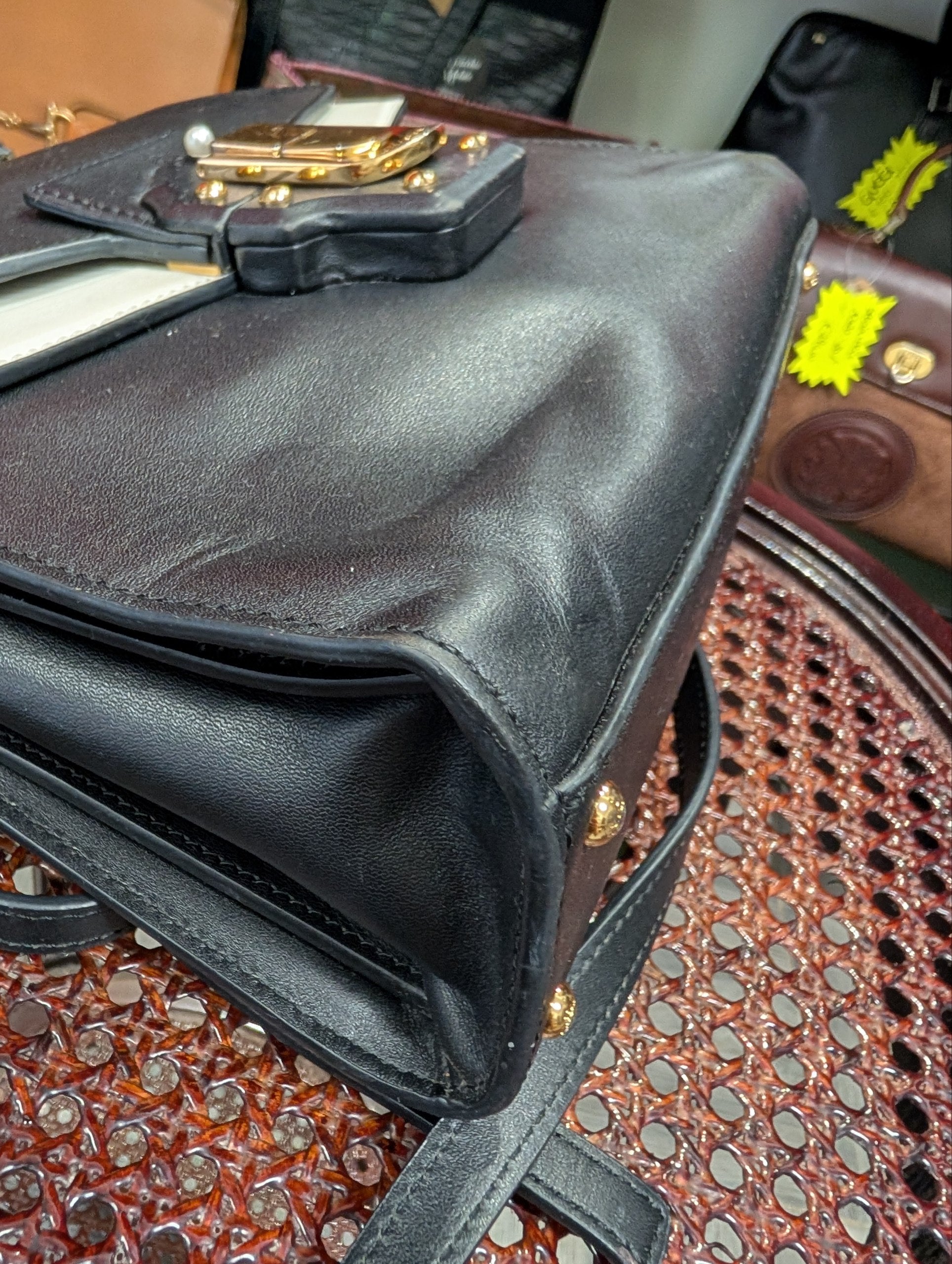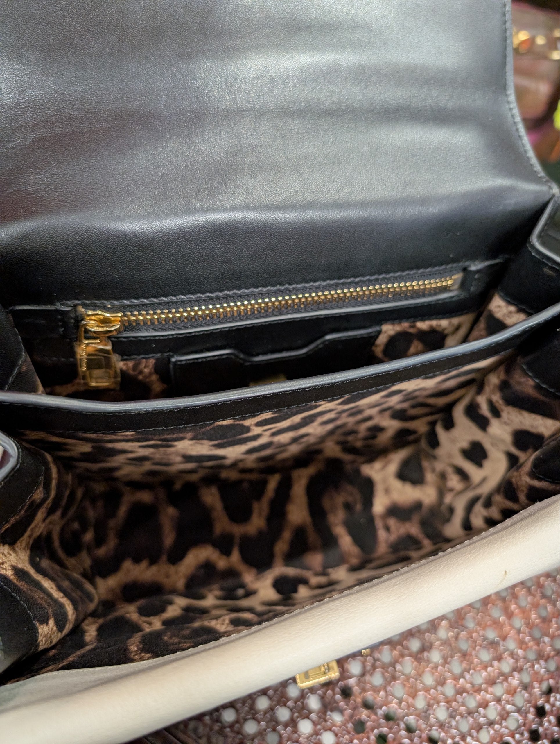 Borsa vintage di Dolce e Gabbana, modello Lucia, in pelle liscia nera e bianca.