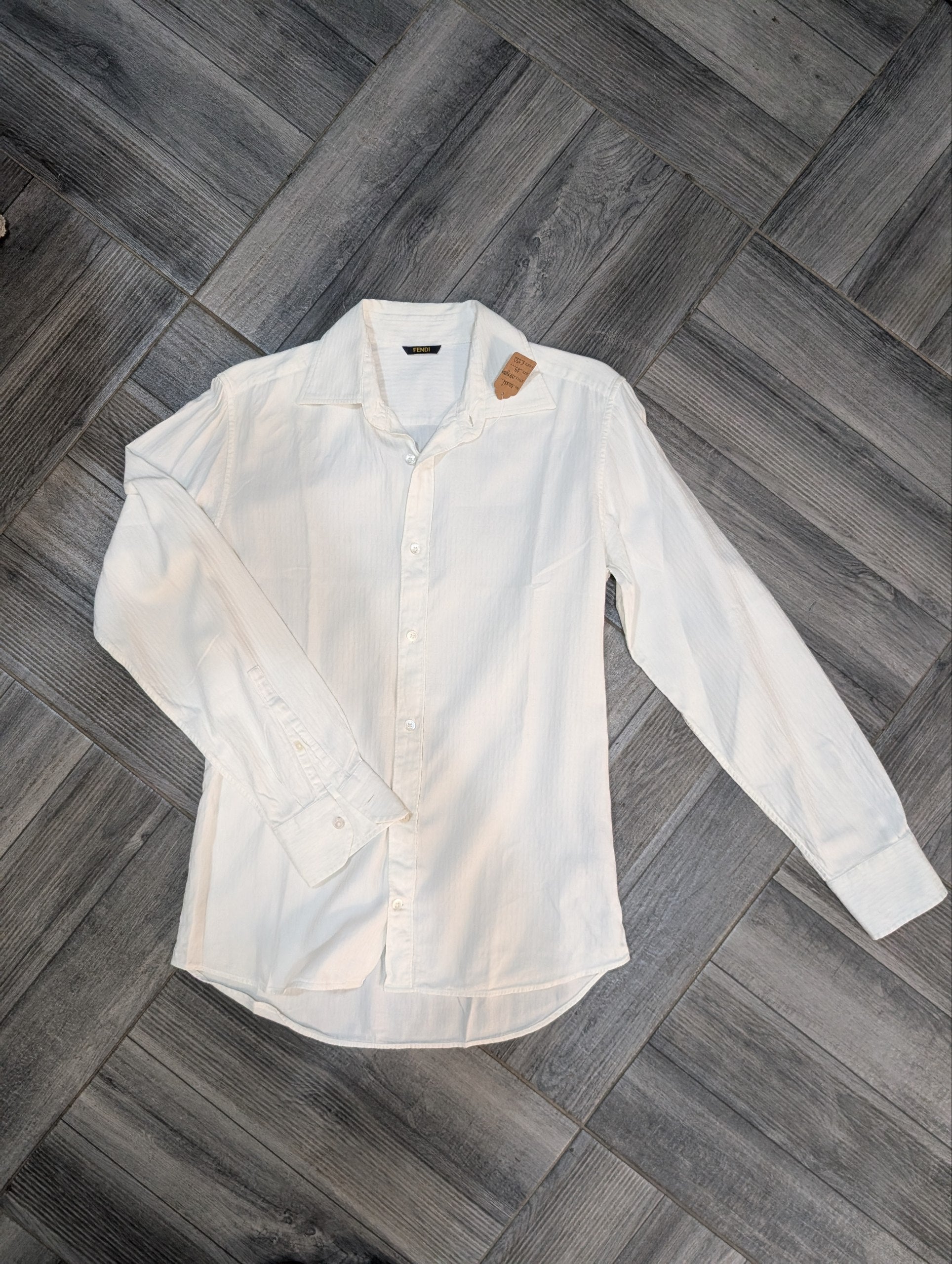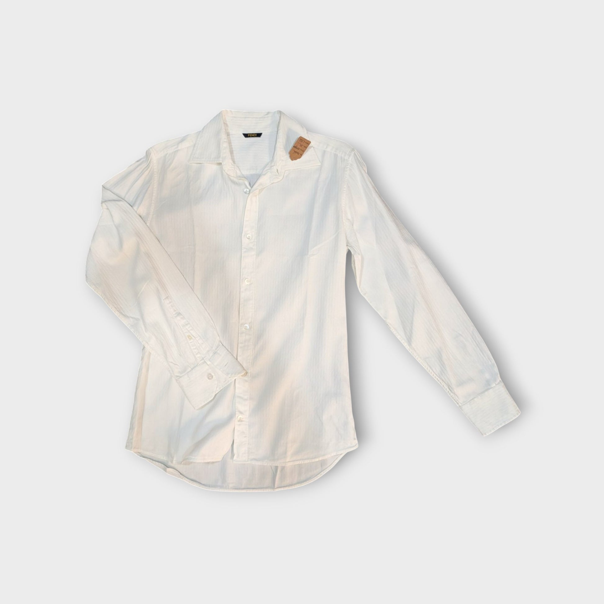 Camicia vintage di Fendi, in 100% cotone, con logo FF zucchino bianco, elegante e adatto ad ogni outfit. Taglia riportata 39. Codice seriale presente, così come l'etichetta di composizione.
