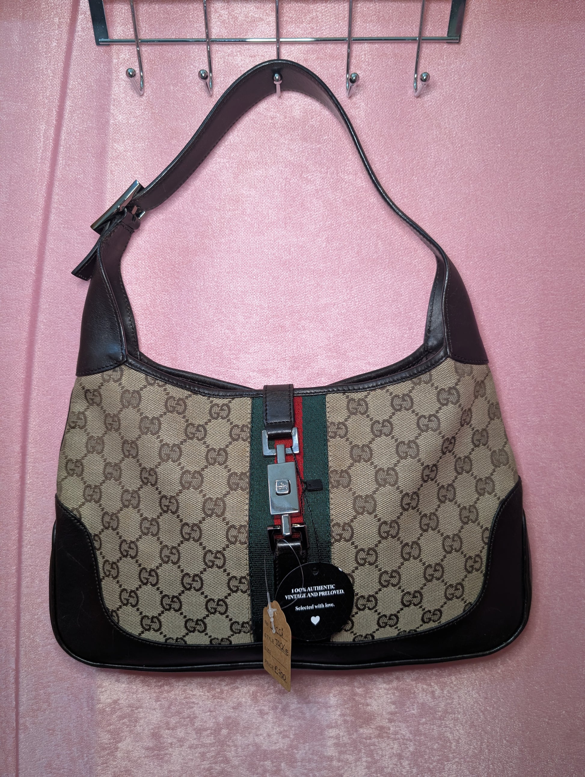 Gucci modello Jackie, era Tom Ford, striscia web e tela monogram GG.