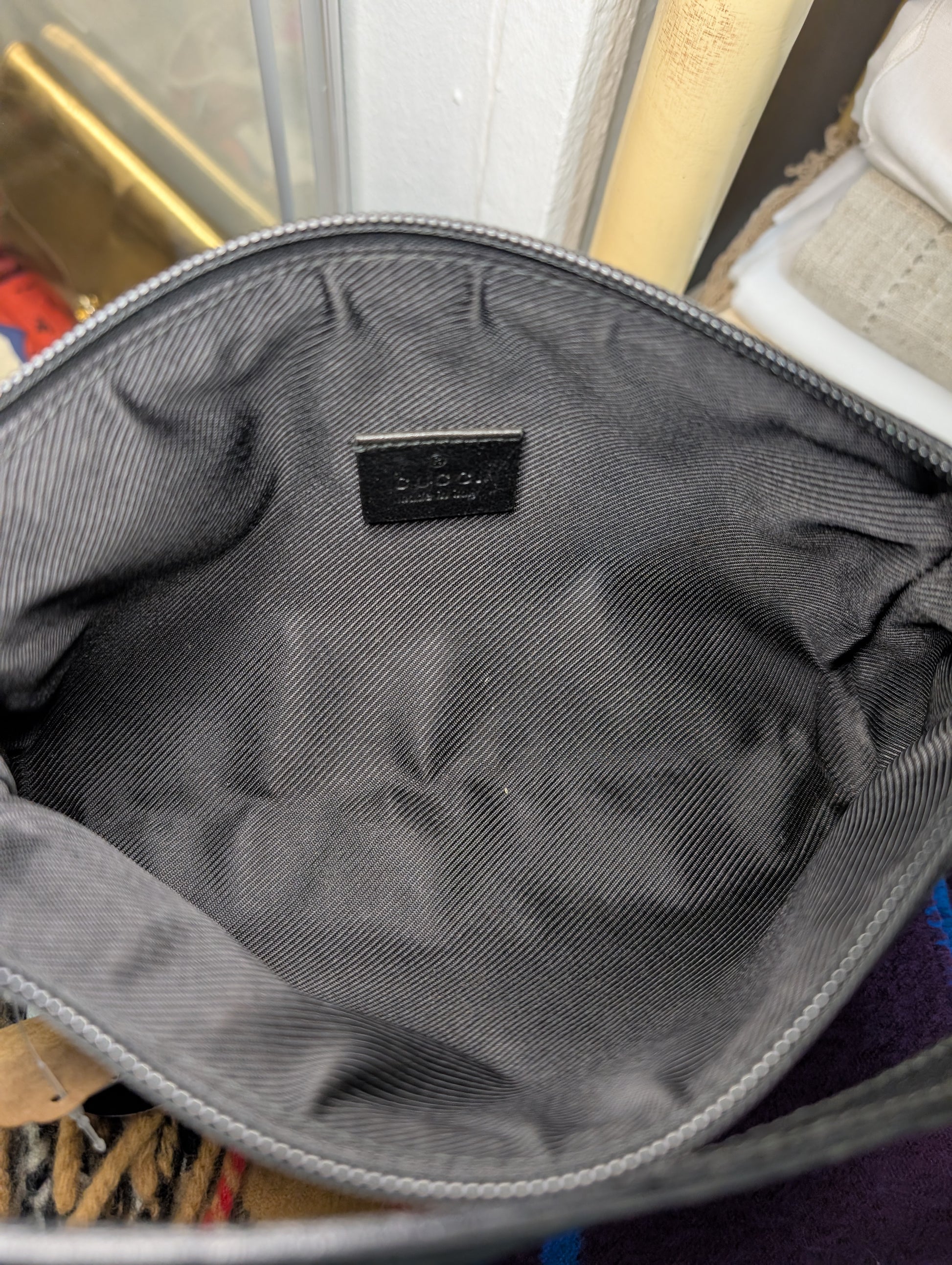 Borsa di Gucci, modello Abbey, in tela monogram GG tono su tono, portabile a spalla.