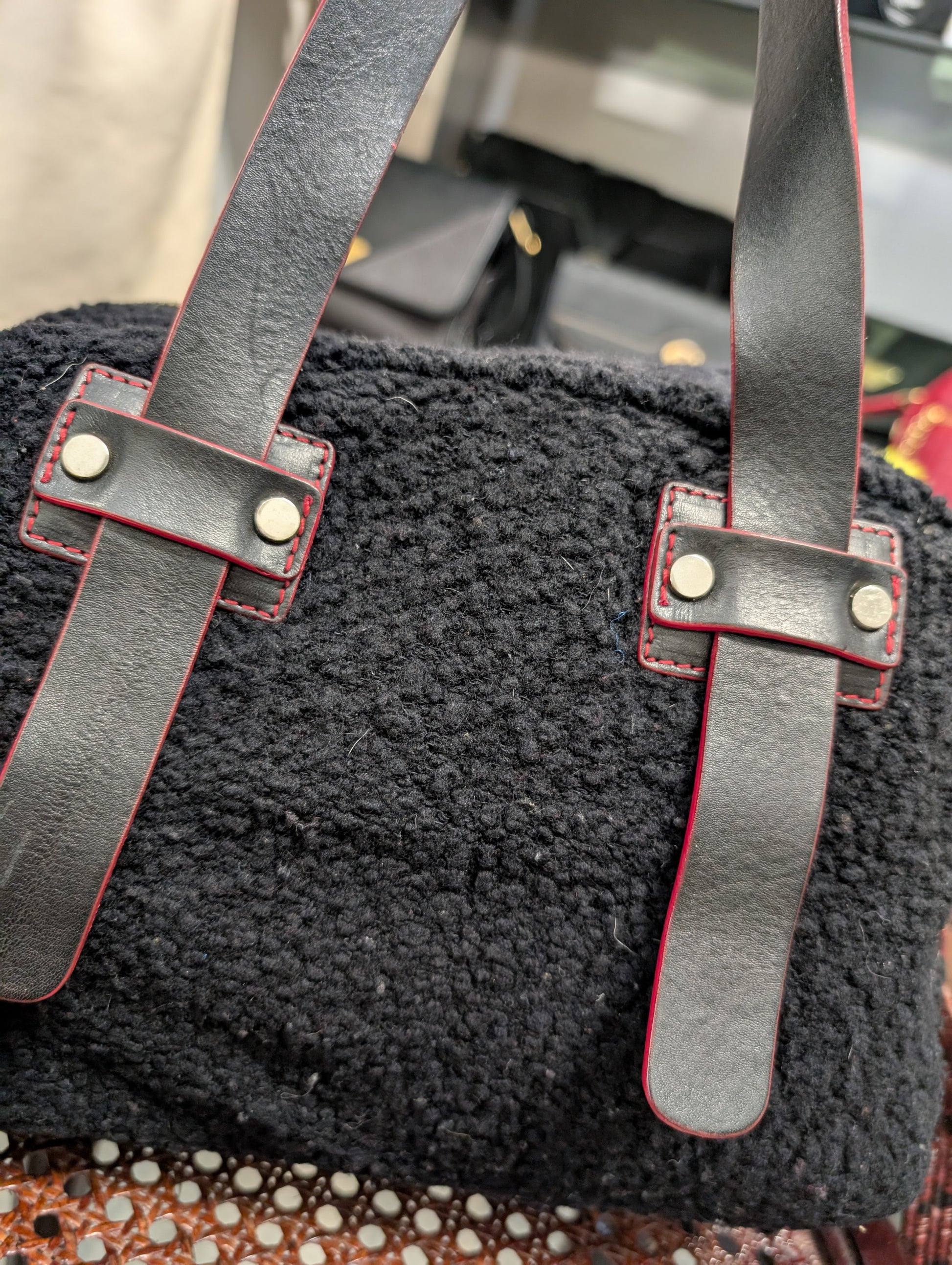 L'esterno è in lana, e le rifiniture in vera pelle.