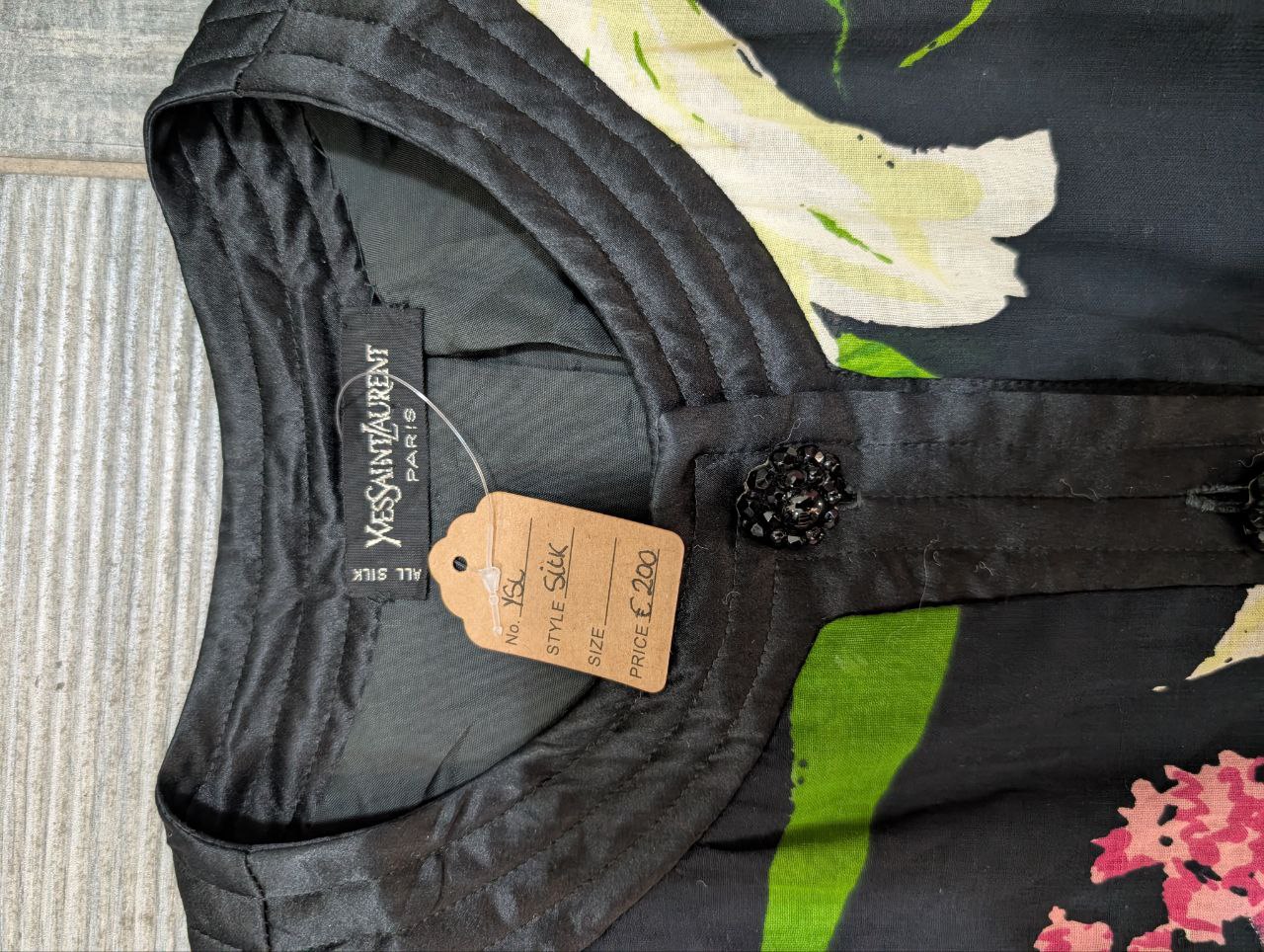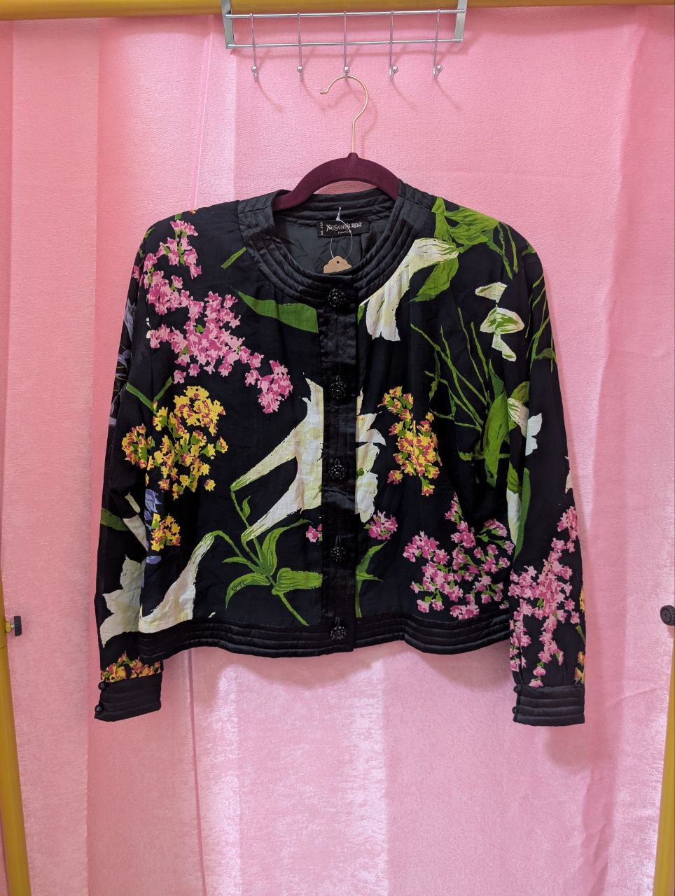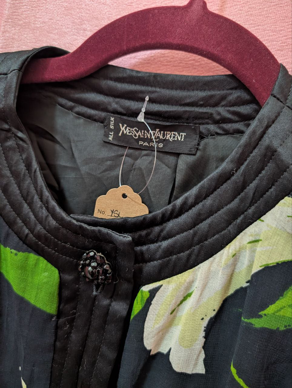 Stupenda giacca vintage, anni 80 circa, di Yves Saint Laurent, in pura seta e bottoni gioiello.